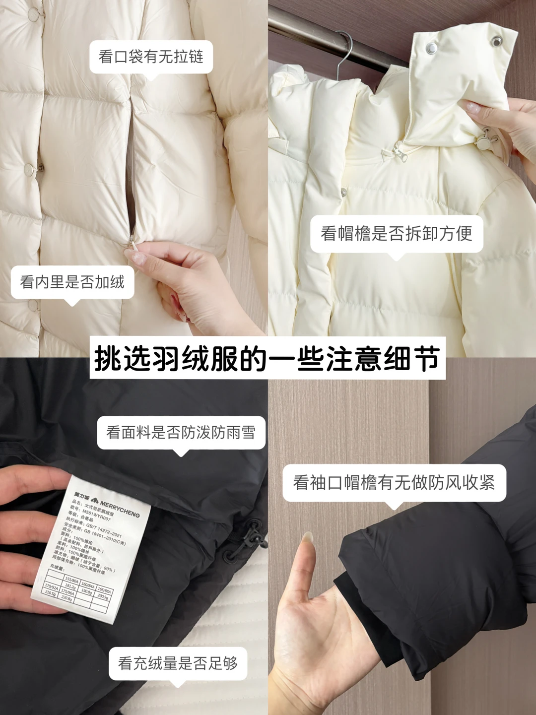 身为一个怕冷的广东人 一件既轻又暖的羽绒服是我的“续命”刚需 衣柜里留下的这三件都是我精挑细选后留下的 能满足不同温度、场景和穿搭 - 1⃣ 白色短款羽绒服 版型特别挺括,不软塌,上身不臃肿很修身 90%的进口珍稀白鹅绒填充 加上222g的高充绒量和700+蓬松度 保暖度很实在,对南方和北方的初冬都足够了 - 2⃣ 黑色短款羽绒服 泡芙廓形剪裁,蓬松的弧度保证了温暖 又让整体版型看起来显高又显瘦,特别修饰身型 整衣做了抗静电处理,黑色清洁打理也更省心 防泼水面料,出门遇到小雨小雪,依然能保持干爽 - 3⃣ 白色中长款羽绒服 之前很多姐妹一直在问的一件 充绒量能有300g+,穿1件能顶3件 实物上身比想象的轻盈很多,长款过膝特别藏肉 白鹅绒的保暖性非常实在,哪怕在北方过冬一件也够了 - 像羽绒服这种大件!! 买到一件实用又合身的,真的能穿好多年 我这三件羽绒服都是美力城的 认准了它家,买到现在基本没花过冤枉钱! - 顺带分享一些挑选好穿羽绒服的小技巧: ✅ 挑款式 设计越简单越耐穿,版型合身才保暖 短款活动方便还护腰,长款要能盖住大腿和膝盖 ✅ 看面料 外层面料选防泼防油污的,白色羽绒也不怕脏 买的时候看看走线是否扎实,不易跑绒 - ✅ 看填充 鹅绒轻便保暖,较贵,充绒量选80%以上的 充绒量短款100g+,长款200g+以上更好 羽绒服看清洁度,清洁度越高异味越小 - ✅ 抠细节 口袋要够深,有无带拉链,能稳稳装手机 口袋磨毛,袖口有无松紧,防钻风等是舒适度的加分项 -