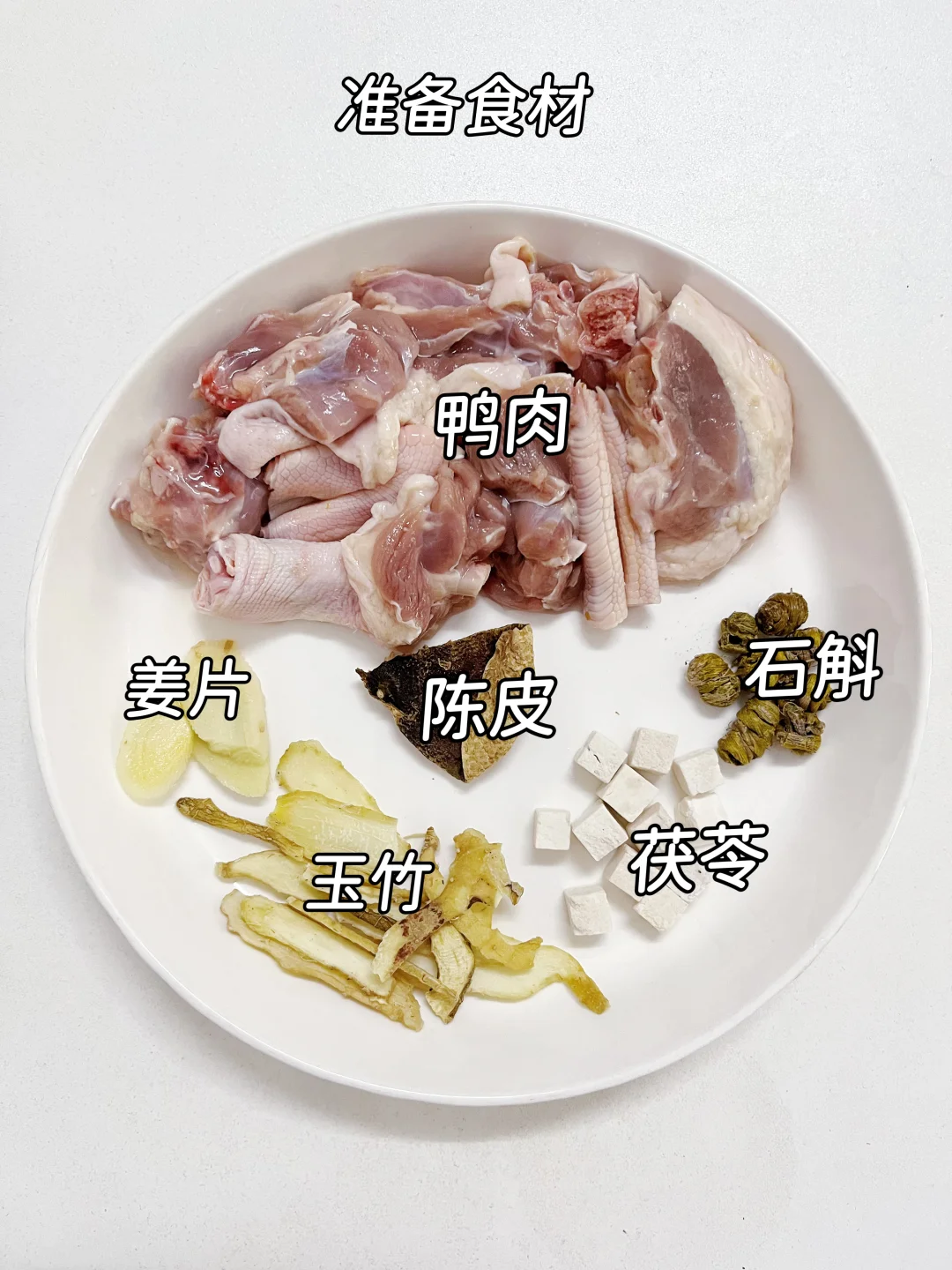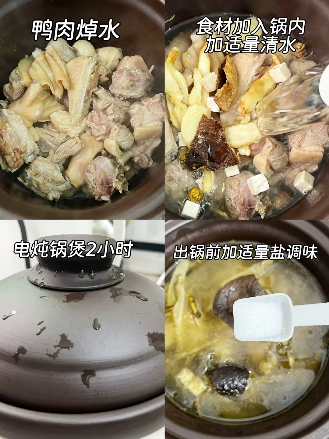 1⃣️ 鸭肉焯水洗净,所有食材洗净放入炖锅。