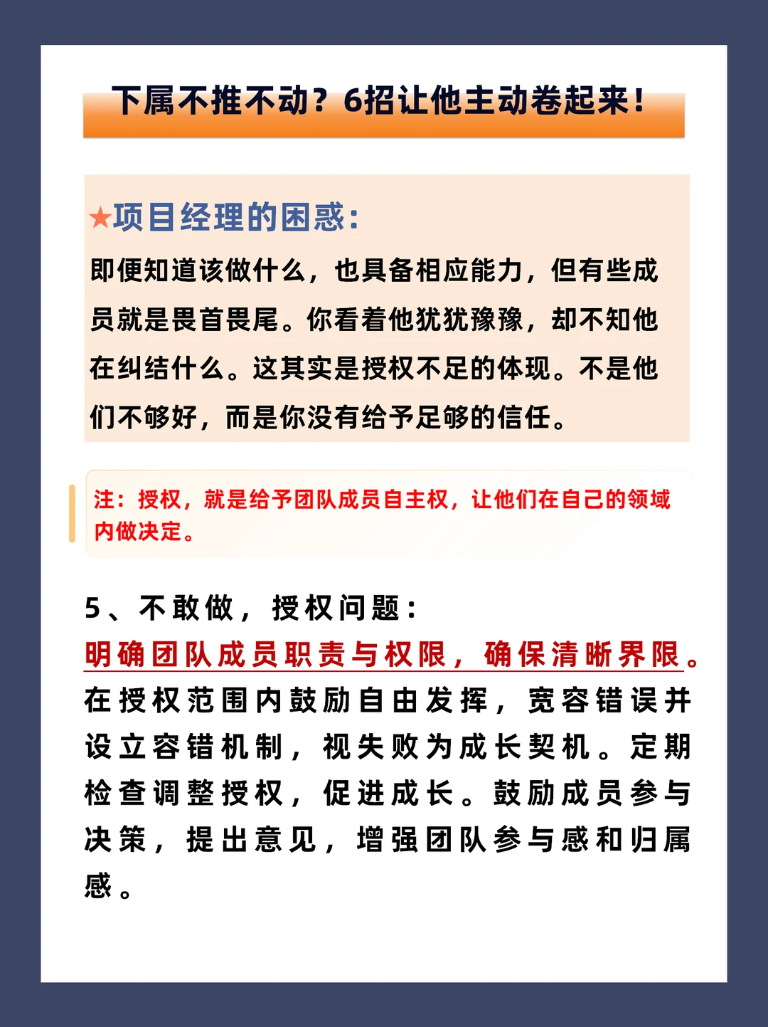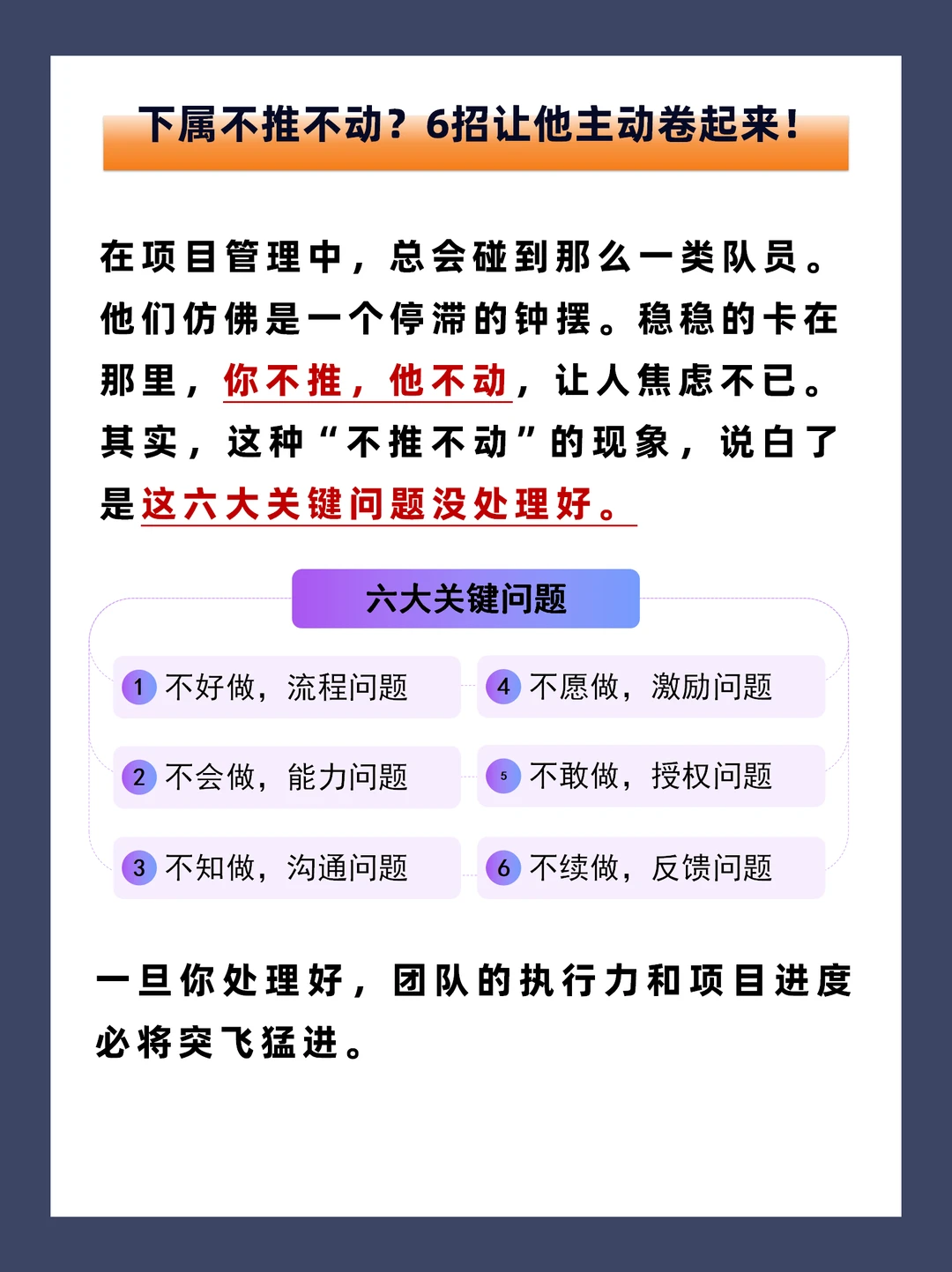 下属不推不动背后的六大根源,以及对应的6个解决策略👇