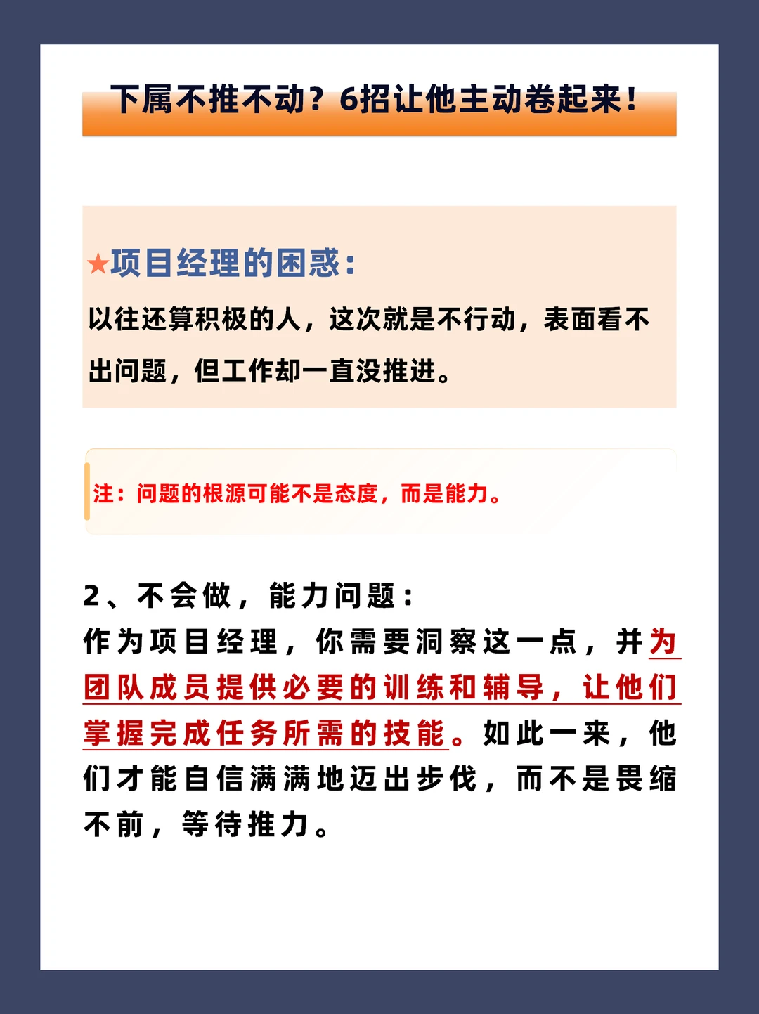 ➤ 解法:及时辅导+技能培训,别让“能力缺口”拖垮进度。