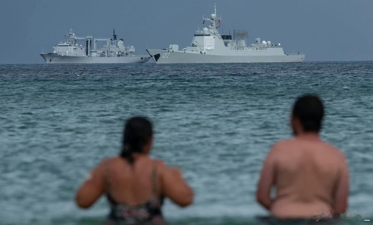 中国海军052D型驱逐舰122号“唐山”舰、889“太湖”号补给舰抵达南非开普敦