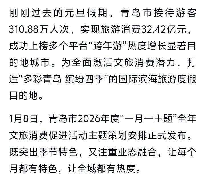 青岛放大招!2026全年“玩命宠客”攻略曝光,每月主题狂想曲,一张车票半价狂刷全城700项福利! 刚刚跨入2026,青岛就用一份热气腾腾的全年文旅“盛宴菜单”,炸响了开年第一声惊雷。这不仅仅是计划,更是一封写给全国游客的“宠客”宣言书。它精准地戳中了现代人的旅行痒点:我们厌倦了走马观花,渴望深度体验;我们反感套路消费,期待真心实惠。青岛这次,把整座城市变成了一个永不落幕的主题公园。 你看这一月的“元月新风,沐光启程”,哪里只是简单的迎新?它精准拿捏了当代年轻人的仪式感焦虑。滑雪挑战赛的激情、高空婚姻登记的浪漫、文创市集的潮玩,它告诉你,新年flag可以从一场尖叫开始,爱情可以在369米云端见证。这不再是冰冷的官方活动列表,而是一份为你量身定制的生活解决方案。 再看那贯穿全年的“一月一主题”,每一个都像精心设计的情绪钩子。二月的非遗年味,是帮都市游子寻回失落的烟火气;三月的面朝大海春暖花开,治愈的是被格子间禁锢的身心;七月的“与世界干杯”,直接点燃夏夜狂欢的荷尔蒙。它深谙人性,懂得我们每个季节、每种心境下,最隐秘的渴望。 最绝的是那张小小的“票根”。它彻底颠覆了传统旅游营销的逻辑。过去,优惠是零散的、需要费力搜寻的。现在,一张抵达青岛的交通票根,瞬间变身成为打开这座城市的“万能折扣卡”。这背后,是青岛从“管理思维”到“用户思维”的彻底转变。它不再把你当作过客,而是视为值得用真金白银回馈的“自己人”。这种被一座城市郑重欢迎和慷慨款待的感觉,足以击穿任何游客的心理防线。 当我们细看那145项具体活动和8大精品线路时,更能发现其用心之深。“海誓山盟婚恋线”“老城漫步文艺线”,它甚至帮你规划好了恋爱该怎么谈,文艺范该怎么晒。从分散景点到主题聚合,从碎片打卡到全域沉浸,青岛正在亲手拆除游客与本地生活之间的那堵墙。它邀请你的,不再是一次观光,而是一场深度“角色扮演”,让你在十二个月里,体验十二种不同的人生剧本。 这波操作,本质上是一场关于城市竞争力的终极内卷。卷的不是资源,而是心意;卷的不是口号,而是细节。当别的城市还在比拼景点数量时,青岛已经开始比拼“情绪价值”和“消费体验”的颗粒度。它知道,能留住人心的,从来不是冰冷的山水,而是有温度的记忆和触手可及的实惠。 所以,这份年度策划,是一份攻略,更是一份洞察人性的城市叙事。它让青岛的海风里,不仅有了咸味,更有了故事的滋味和人情的温度。它成功地让每个看到的人都不禁在想:我的2026,是不是该留给青岛一个月?这张票根的背后,是青岛向所有人发出的、无法拒绝的沉浸式生活邀请函。你,准备赴约了吗? (来源:齐鲁晚报·齐鲁壹点) 青岛旅游攻略 文旅消费