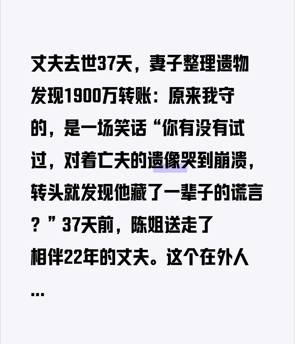 丈夫去世37天,妻子整理遗物发现1900万转账:原来我守的,是一场笑话 “你