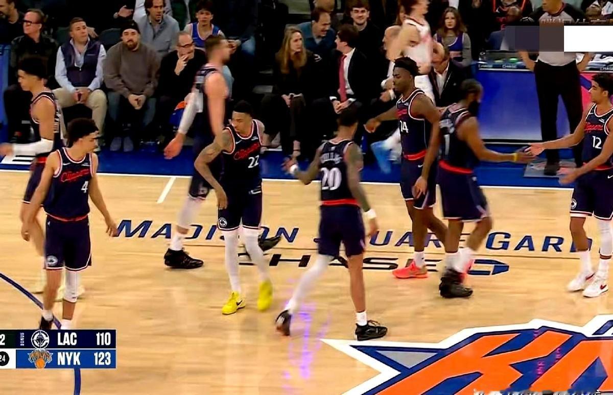 科怀·伦纳德半场21分,下半场仅得4分,末节直接挂零! 真的就眼睁睁看着快船在纽约崩了。 第三节末到第四节,尼克斯直接打出一波24-7的攻击波,瞬间把比赛带走。上半场还夸快船防守强度在线,结果下半场体能槽一空,脚步完全跟不上,防守全是漏洞。 卡尔-安东尼·唐斯末节独得10分,彻底冲垮了快船的防线。 泰伦·卢在场边也急,但任何战术都没用。最后1分30秒的换人,看着更像是提前认输了……因为核心问题就是跑不动了。 最终比分111-123。最担心的体能隐患,在高强度对抗下,还是暴露无遗。