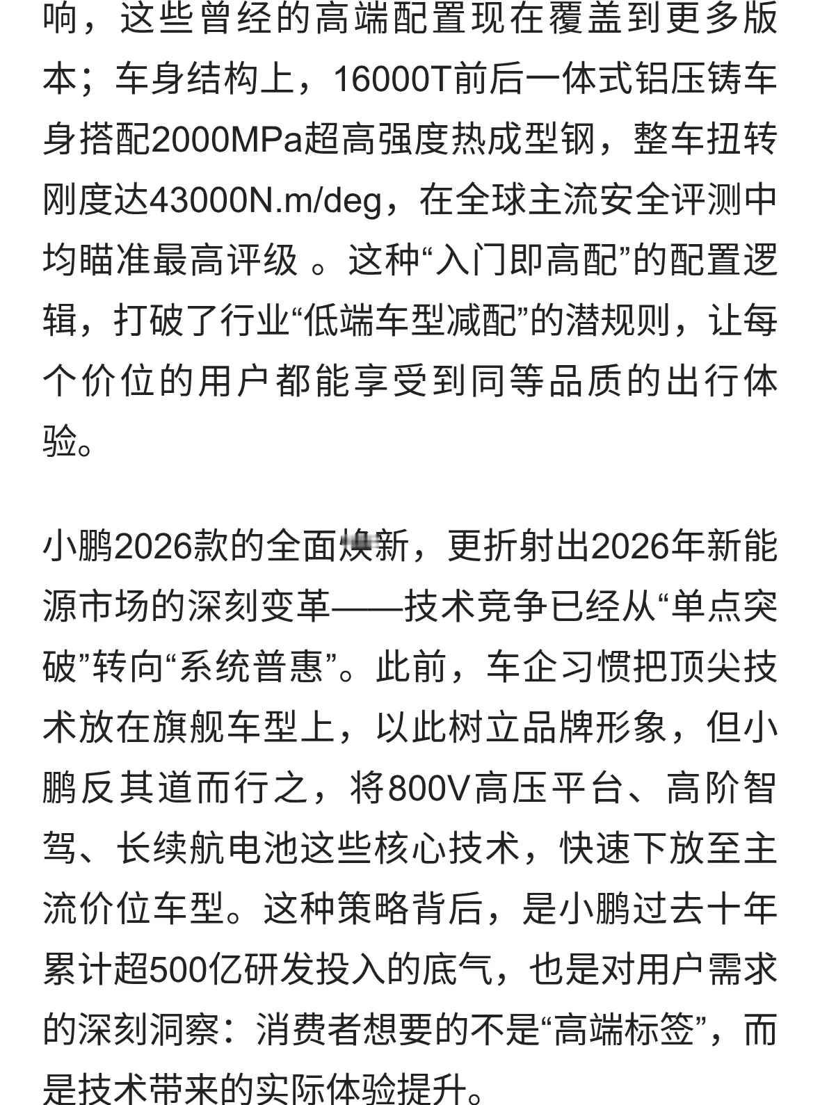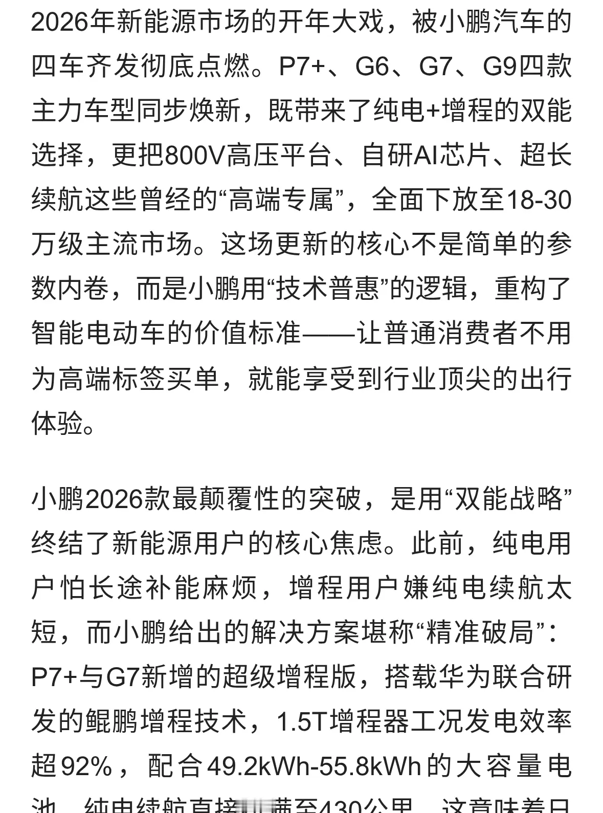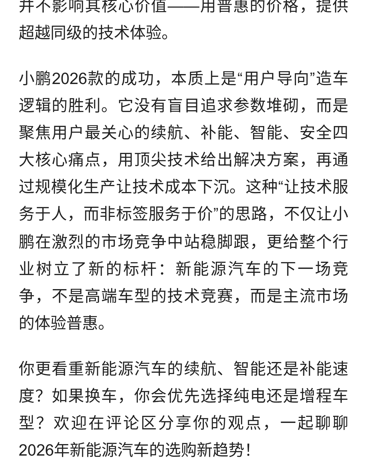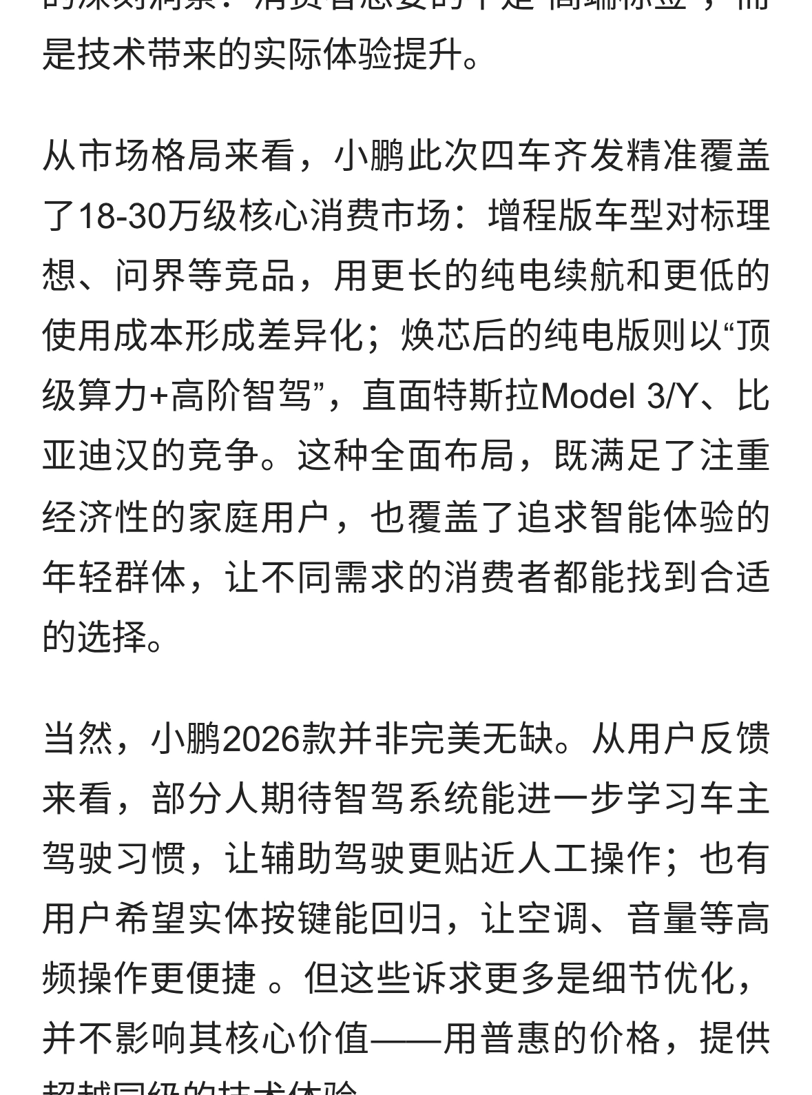 小鹏2026款四车齐发:不是堆配置,而是把高端技术做成普惠标配