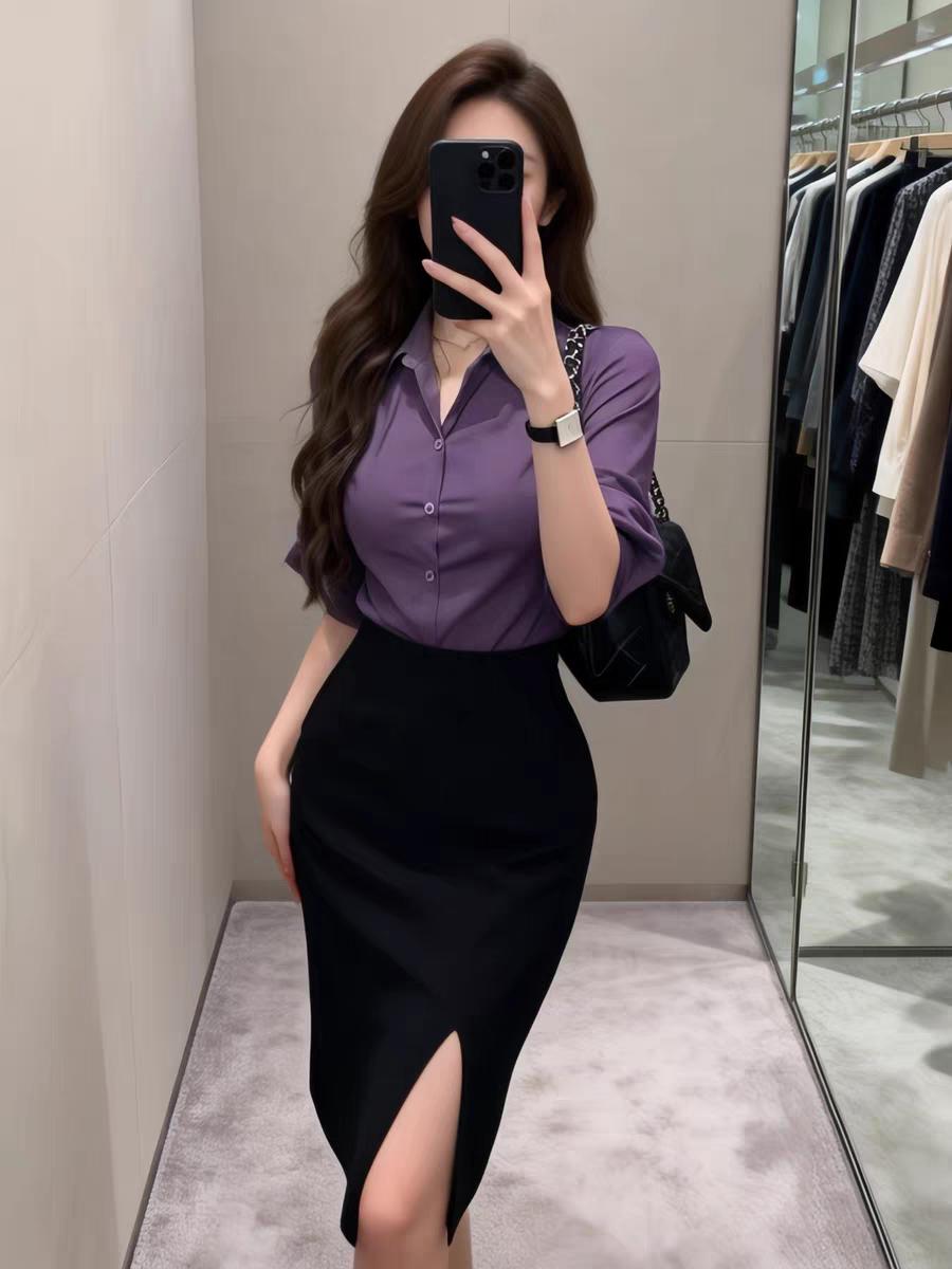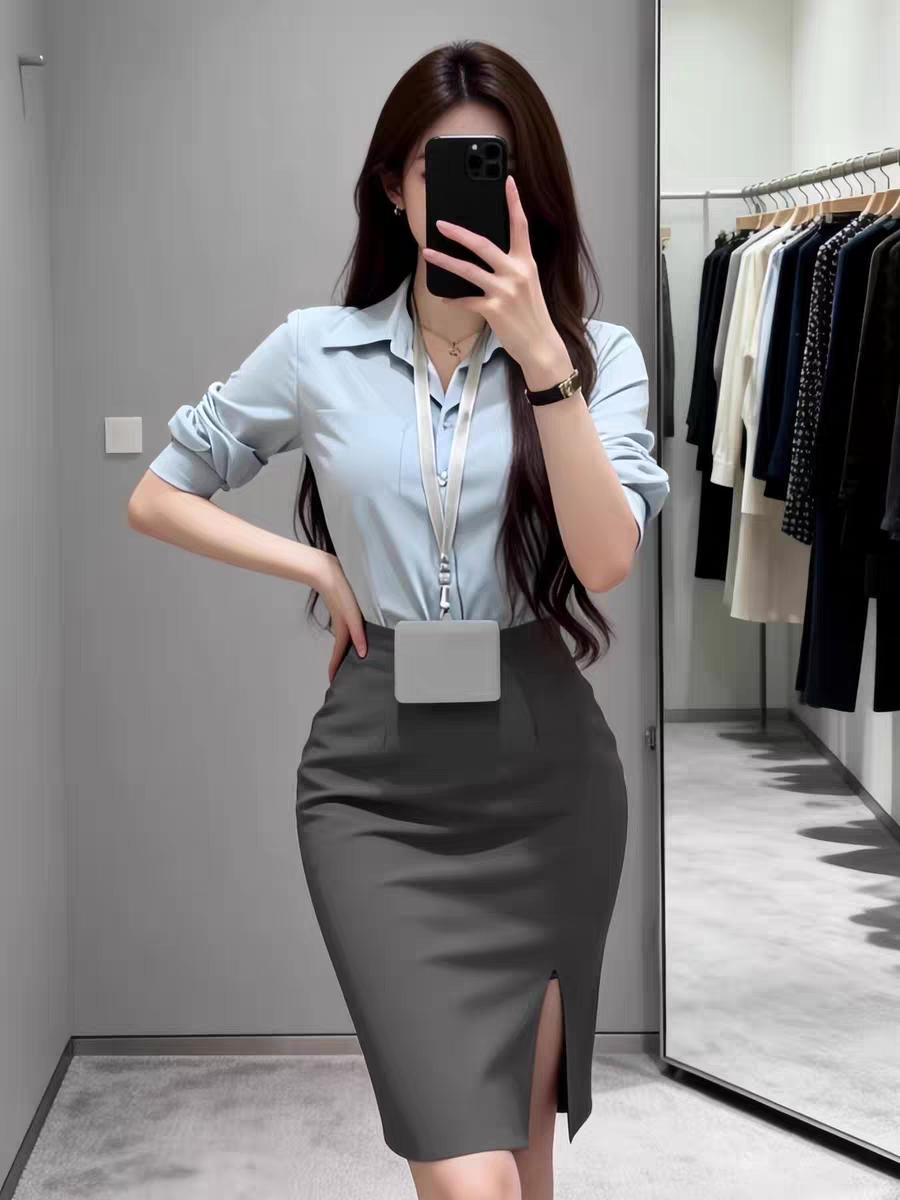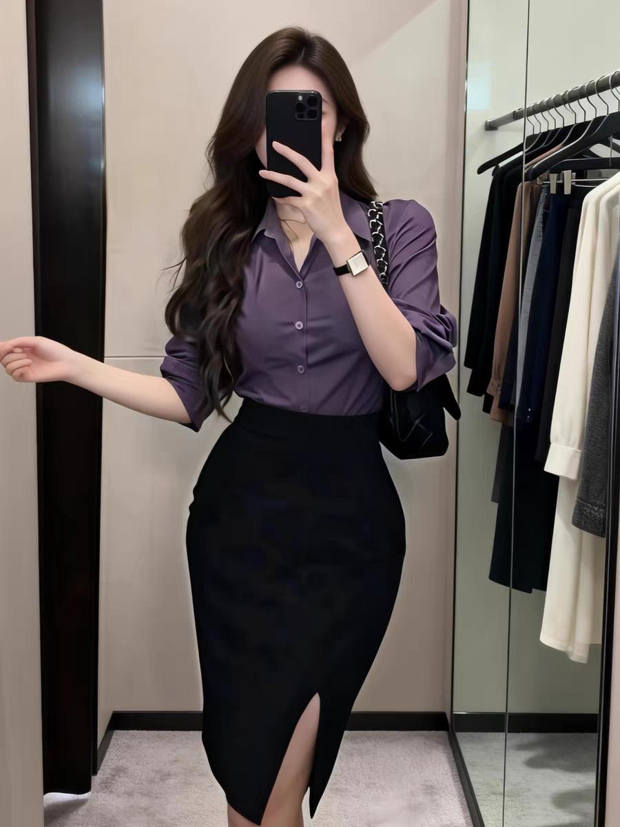 纯欲风收身衬衫包臀裙两件套!纯欲风