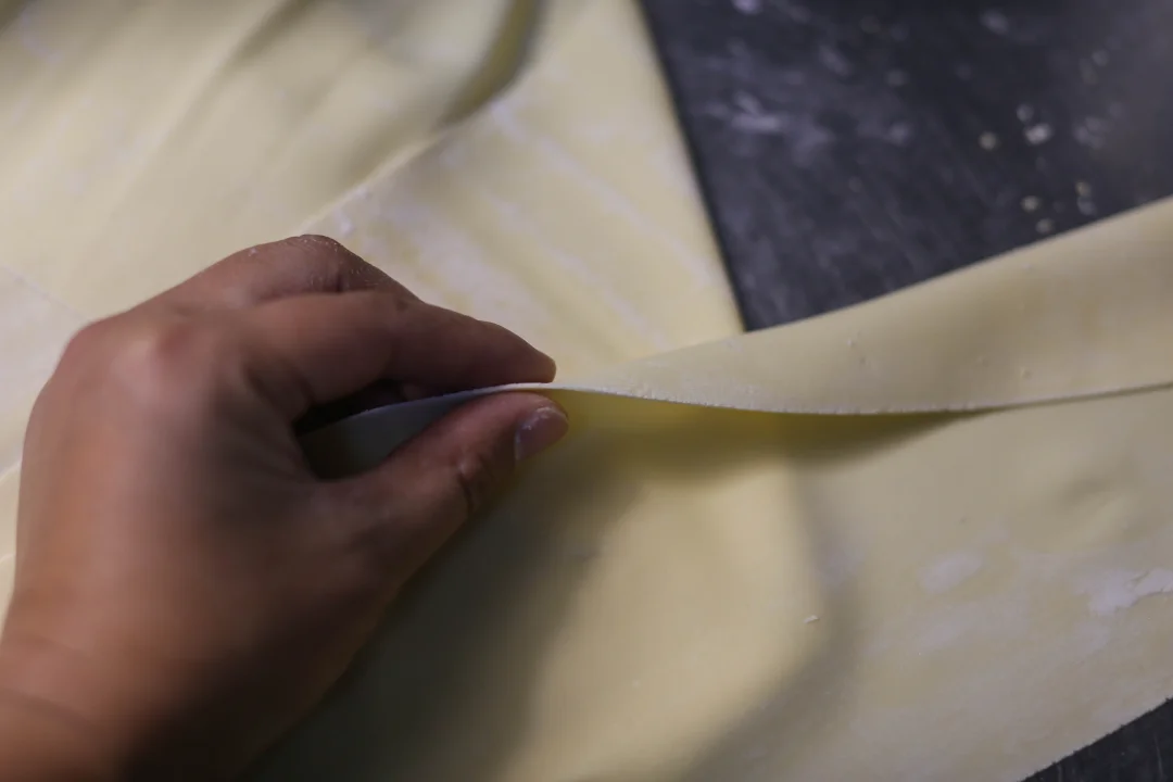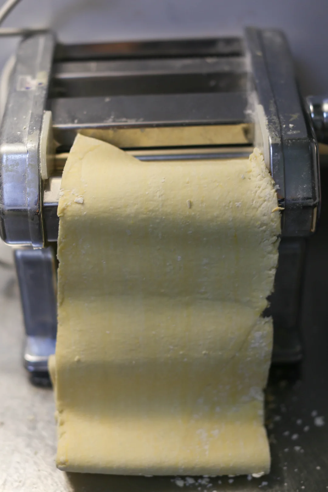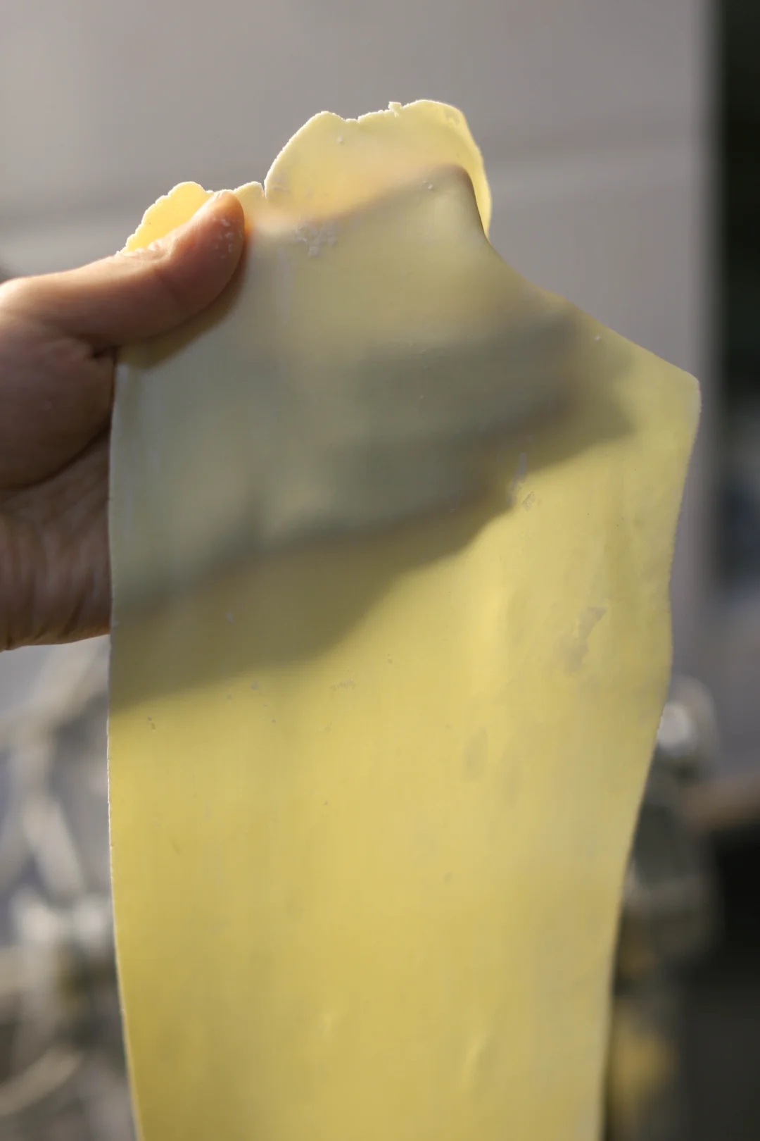 3:慢慢调档直至到最薄的档位,面片最后成型。