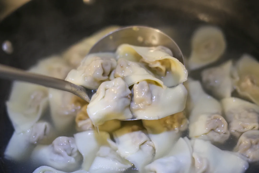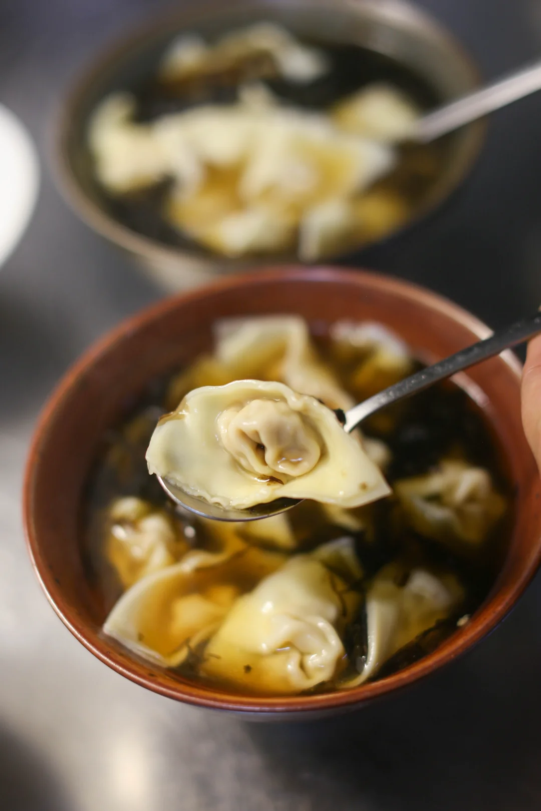 提前煮水,取几张皮,包上拇指大的鲜肉馅。在沸水里一滚即熟,皮子舒展开,在清汤里载沉载浮。入口是轻若无物的滑,继而舌尖触到面香。