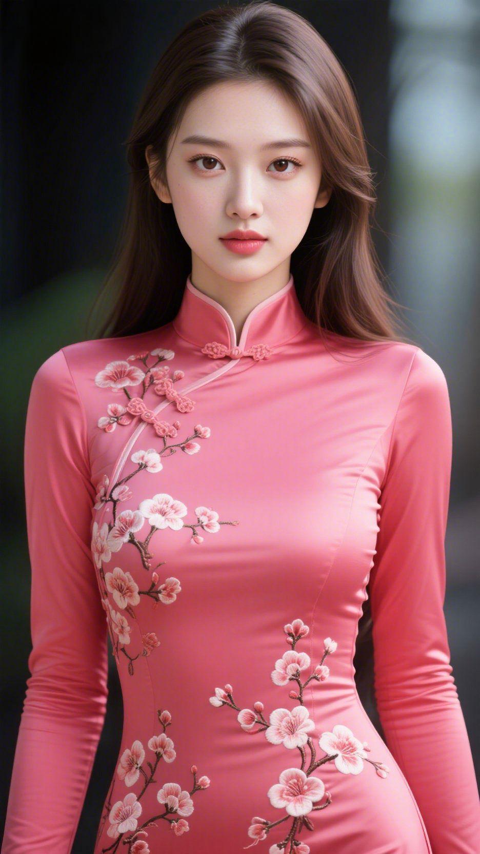 粉衫裹春柔 柔风携花意漫过时,这抹粉浸在了春的轻甜里。 旗袍领口盘扣缀着嫩枝纹,襟侧绣梅叠着柔色,像把枝上初绽的春,妥帖缝进缎面的软意中。长发垂落,眉眼神色裹着草木的静——是浸了新蕊气息的舒展,粉如匀开的桃露,衬着花绣的暖,让目光落处都沾了轻软。 原来舒展的好看从不是跳脱的艳,是这样立在春深处,便让周遭风都裹了层妥帖的柔。 粉衫春痕 旗袍柔芳