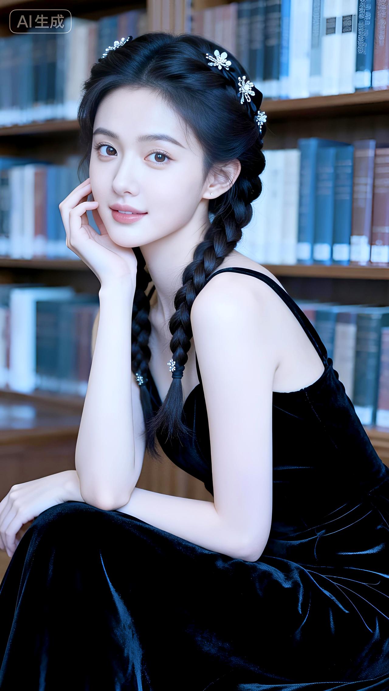飘窗光线绝了,麻花辫和裙子搭得刚好,拍出来肯定仙!