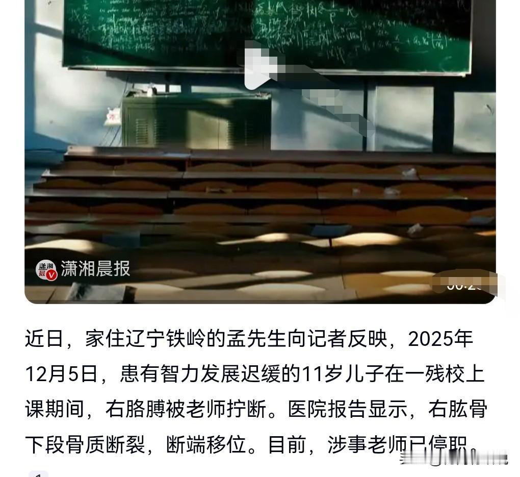 这真是太悲剧了,这么小的孩子竟然胳膊被拧断了。 1月10日热搜,近日,家长反映,11岁儿童胳膊被老师拧断。 骨头不仅断了,而且旋转错位了,太可怕了。 不知道还能不能回到以前。 感觉这不是赔钱那么简单了,应该追究刑责。 这都成故意伤害了。