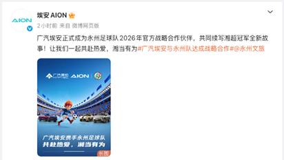 湘超送车炸场!广汽埃安宠永州队,球迷球员一个不落。   湘超冠军永州队的排面继续拉满!继江苏“十三太保”球迷跨省自费打广告牌为他们喝彩后,国民品牌广汽埃安也重磅加码——官宣成为永州队2026年官方战略合作伙伴,送出20余台车,这波支持太走心!   赞助福利诚意拉满:球迷票选出永州队最佳贡献球员,每人送一台埃安UT super“永冲锋”冠军版,宁德时代还送终身免电池租金权益!   此外,球迷福利也不缺席!1月18-24日CMG群众足球邀请赛期间,线上抽1台同款车,现场抽2位球迷各得1年昊铂HT或埃安i60增程版使用权;2026湘超永州队主场,还会再抽6台冠军版回馈粉丝,这款车也会面向全网发售~   其实,广汽埃安早就是体育迷的“后盾”,之前还为全红婵等奥运冠军送车,从顶尖运动员到草根球队,始终力挺拼搏精神。   从跨省球迷的纯粹热爱,到国民品牌的硬核支持,永州队的夺冠故事越传越燃。广汽埃安用实际行动证明,企业担当不止于造车,更在于守护热爱、助力国民体育,这样的社会责任感必须点赞!