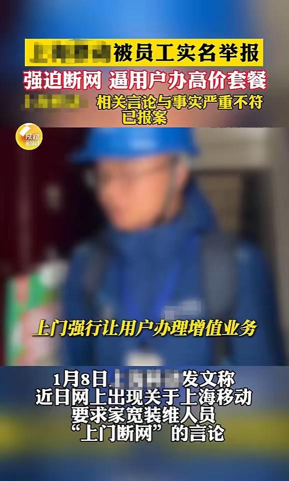 严查到底!”1月7日,上海,三名男子手拿身份证,实名举报当地运营商为了创造营收,强迫员工上门断用户的网络,再用报修的理由逼用户办理高价增值套餐,如果员工不配合,就用开除或者罚款威胁!而运营商得知后立马报警,坚决称是诬陷! 你们见过这么敢的实名举报吗?三个男人直接穿着印着“中国移动”字样的蓝色工服,脖子上挂着工作证,举着身份证直面镜头,把矛头对准了自己的公司。他们在视频里说得斩钉截铁:公司把月消费50元左右的用户归为“低端客户”,逼着宽带师傅上门偷偷断网,等用户急着报修,就趁机推销高价增值套餐,不配合的员工要么罚款,要么直接开除。 这波操作直接把网友看懵了。1月8日,涉事运营商上海移动就紧急回应,一口否认所有指控,说从来没有要求员工这么做,举报内容和事实严重不符,已经正式报警且警方已受理,要追究造谣者的法律责任。可这个回应没平息质疑,反而让大家更疑惑——上海移动说举报视频已经下架,没法核实这三个人是不是自家员工,但视频里三人的工服、工作证都看得清清楚楚,作为大企业,核实员工身份真有这么难? 谁能想到,自家网络断了,可能是被“精准设计”的?这事儿之所以引发全网共鸣,是因为太多人有过类似遭遇。据工信部2024年第四季度电信服务质量通告显示,电信用户申诉里,营销、收费、资费争议占比高达49.4%,接近一半。有消费者想把高价套餐改成低价的,要么被说“合约没到期”,要么被要求去归属地营业厅,来回折腾好几趟都办不成;还有老人被“免费送手机”忽悠,稀里糊涂签了三年高价合约,想解约还得付高额违约金。 通信行业里“推高不推低”的潜规则,早就不是秘密。基层员工的业绩考核,直接和高价套餐办理量挂钩,这就逼着有些人为了冲业绩动歪脑筋。工信部2025年4月正式启动“明白办、放心用”专项行动,要求运营商办理业务必须得到用户明确同意,套餐内容要清晰公示,可实际体验中,套路依然防不胜防。就像这次举报里说的“断网逼办套餐”,如果属实,那就是公然违背监管要求,把用户的信任当创收工具。 现在最关键的问题,到底谁在说真话?从举报者角度看,他们敢亮身份证、露脸、穿工服实名举报,大概率是抱着破釜沉舟的心态——造谣诽谤大企业,一旦查实,不仅要担法律责任,后续工作也会受影响,没点实锤真不敢这么做。可从上海移动这边说,如果真没有这样的考核要求,那这三人要么是假冒员工故意抹黑,要么就是另有隐情,公开报道显示,2025年上海就发生过有人穿通信公司工服剪网线盗窃的事,不能排除这种可能。 但无论真相如何,公众要的从来不是一句“否认”或“已报警”。大家需要的是透明的调查结果:这三个人到底是不是上海移动员工?公司内部有没有“断网逼办套餐”的考核规定?所谓“低端客户”的分类是否存在?这些问题都得查清楚、说明白,才能服众。 每个用户交的话费,不管是50元还是500元,都是真金白银的消费,都该被尊重。运营商创收不能靠套路,更不能把用户的正常使用体验当筹码。监管部门也该借此机会介入,好好查查行业里的类似乱象,让“明白消费”不再是口号。 消费者遇到类似情况也别慌,保留好通话记录、维修单据、聊天截图等证据,随时可以通过12315或工信部投诉渠道维权。毕竟,我们要的不是“严查到底”的口号,而是实实在在的公平和放心。 各位读者你们怎么看?欢迎在评论区讨论。