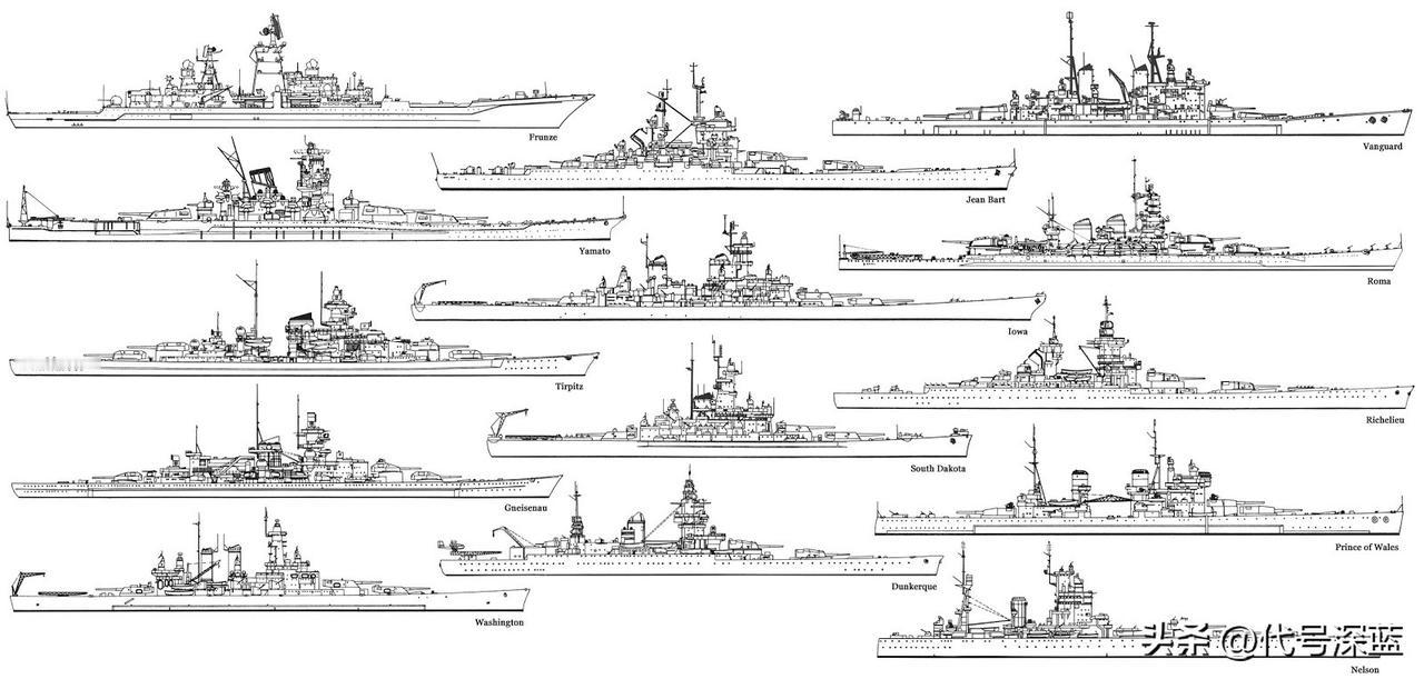 基洛夫级巡洋舰与一众战列舰线图对比 基洛夫级核动力巡洋舰(1144型)舰长251.2米、舷宽28.5米、吃水9.4米、舰员727人、满载排水量26396吨;该型舰采用核动力+蒸汽动力混合装置,最高航速31节。 作为参考: 衣阿华号全长270.4米; 大和号全长263米; 前卫号全长248.2米; 黎塞留号全长247.8米; 俾斯麦号全长251米。