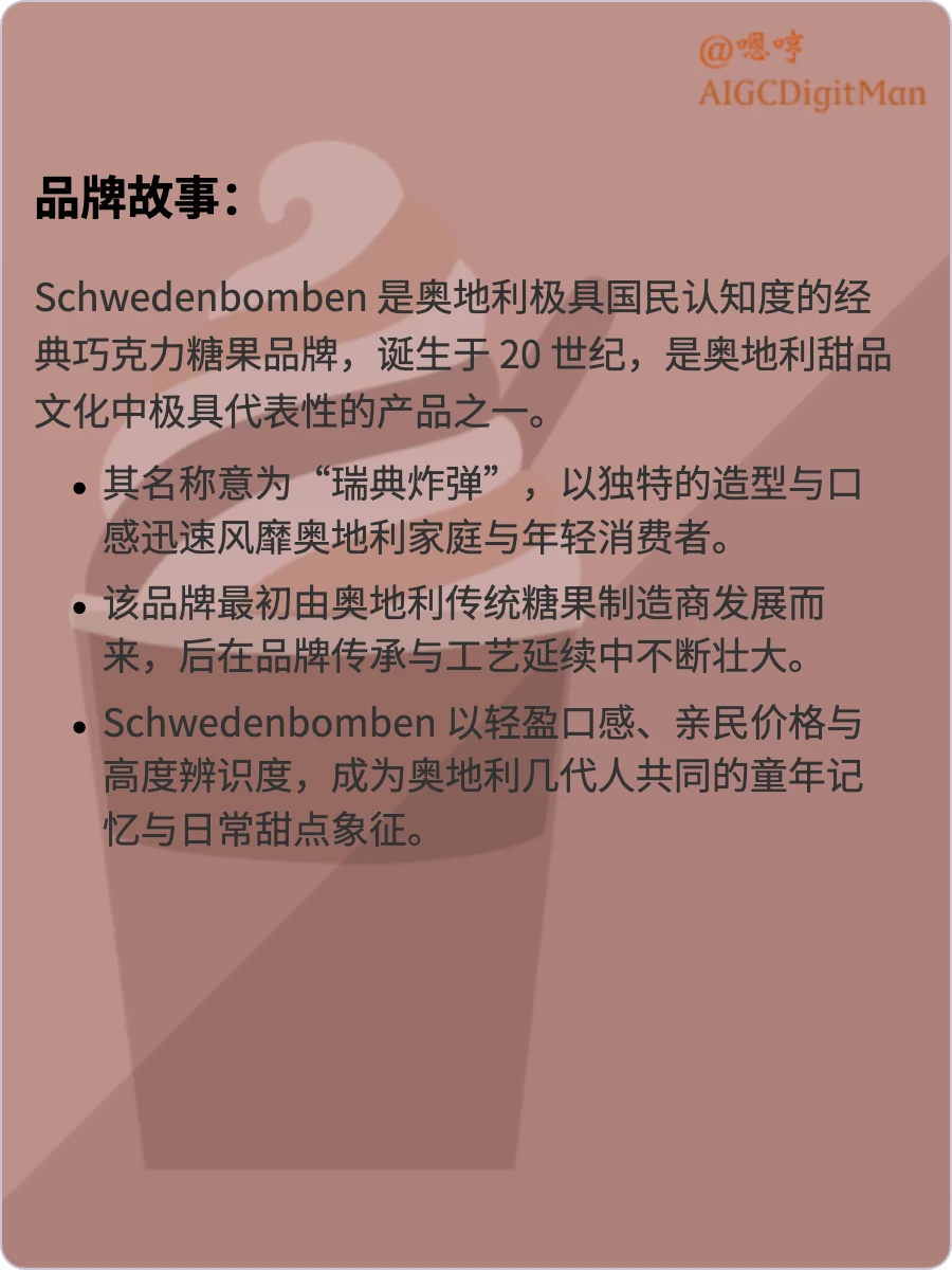 Schwedenbomben 是奥地利极具国民认知度的经典巧克力糖果品牌,诞生于 20 世纪,是奥地利甜品文化中极具代表性的产品之一。