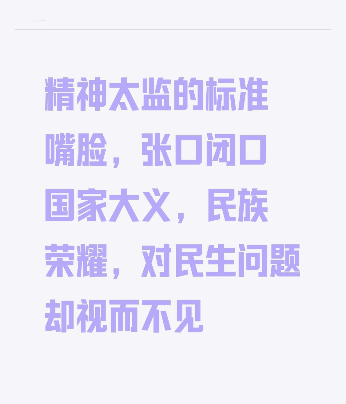 精神太监的标准嘴脸:你那套家国大义的辞藻倒是背得滚瓜烂熟,张口就来,慷慨得像演话剧。可偏偏对民生疾苦装聋作哑,对实际问题顾左右而言他。连身边人的难处都懒得抬眼,连脚下的实事都不愿触碰,这般只挂在嘴边的“爱国”,不过是精致的表演,虚得很,假得很。明朝的太监 皇帝太监 汉朝太监 公太监 太监教程 太监男 兰太监
