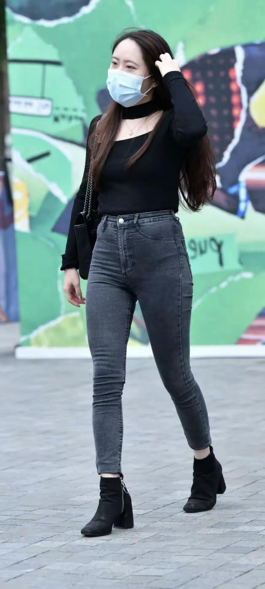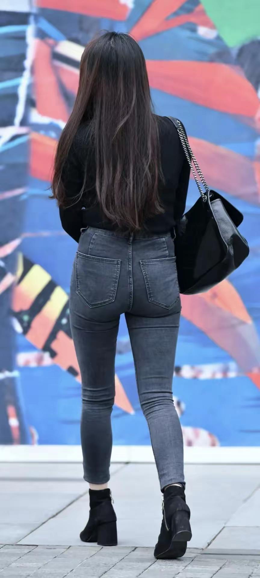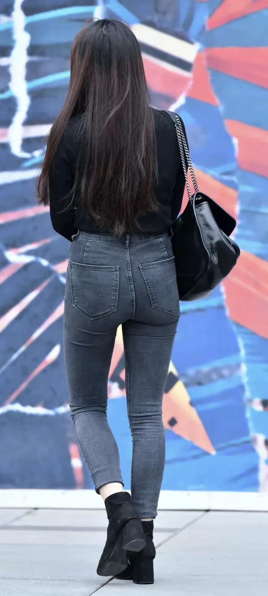 紧身牛仔裤穿搭分享穿搭 街拍 美女人像群 好身材性感女神 牛仔裤