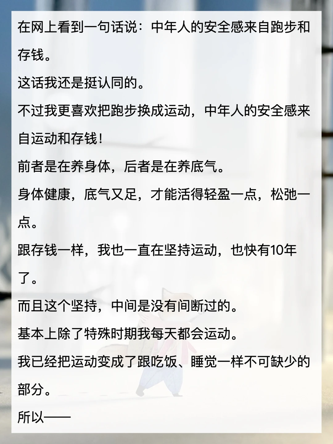 40岁,中年人的安全感来自运动和存钱!