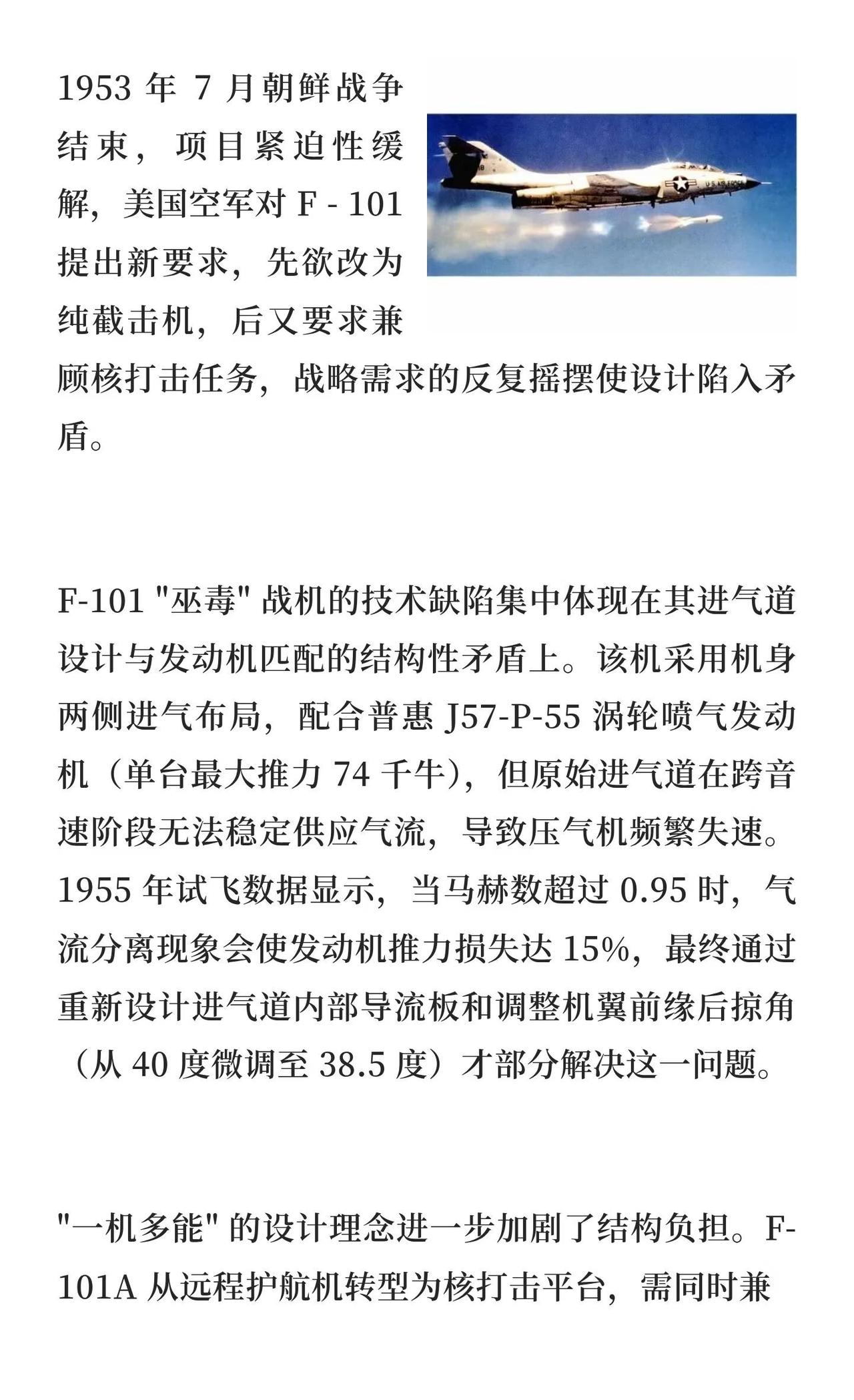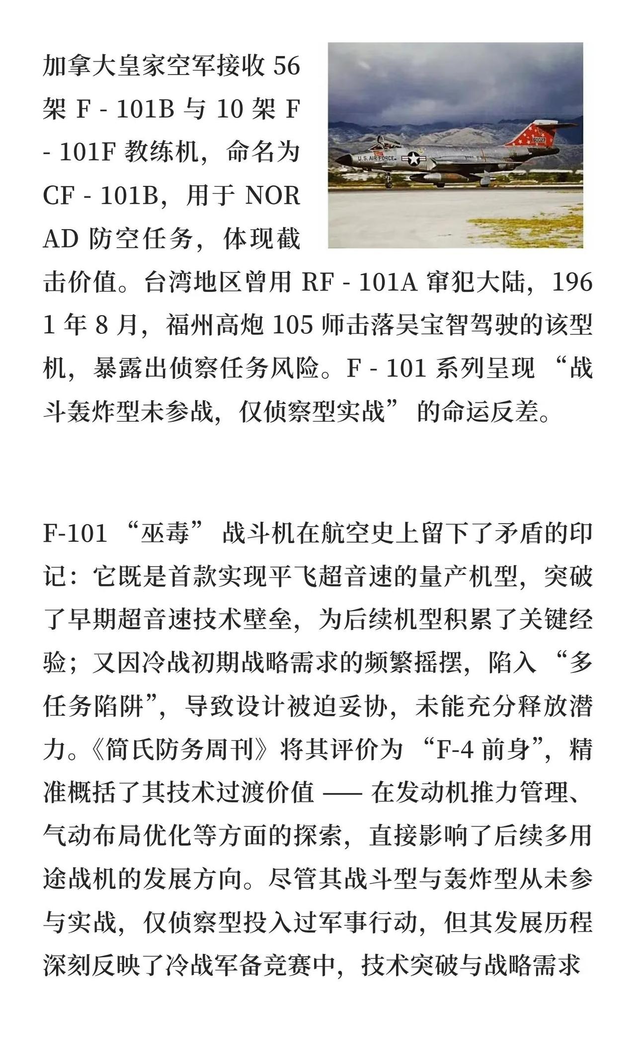超音速传奇还是设计妥协:F-101"巫毒" 战机 F-101“巫毒”战机突破超音速技术,但因战略需求摇摆和设计妥协,在越南战场沦为高炮和导弹猎物,最终因技术落后被弃用。航模黄老师 一起看飞机 航天 战斗机 军事 武器装备 第一次世界大战 航空