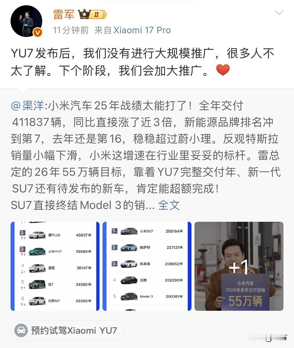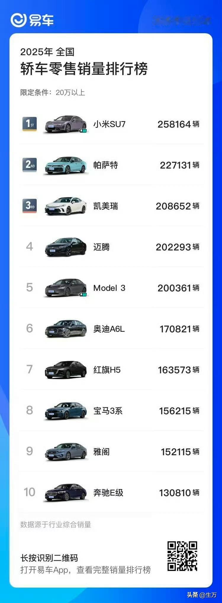 雷军:特斯拉确实强,但并非不可战胜! 就在刚才,雷军在看了易车网的这个排行榜之