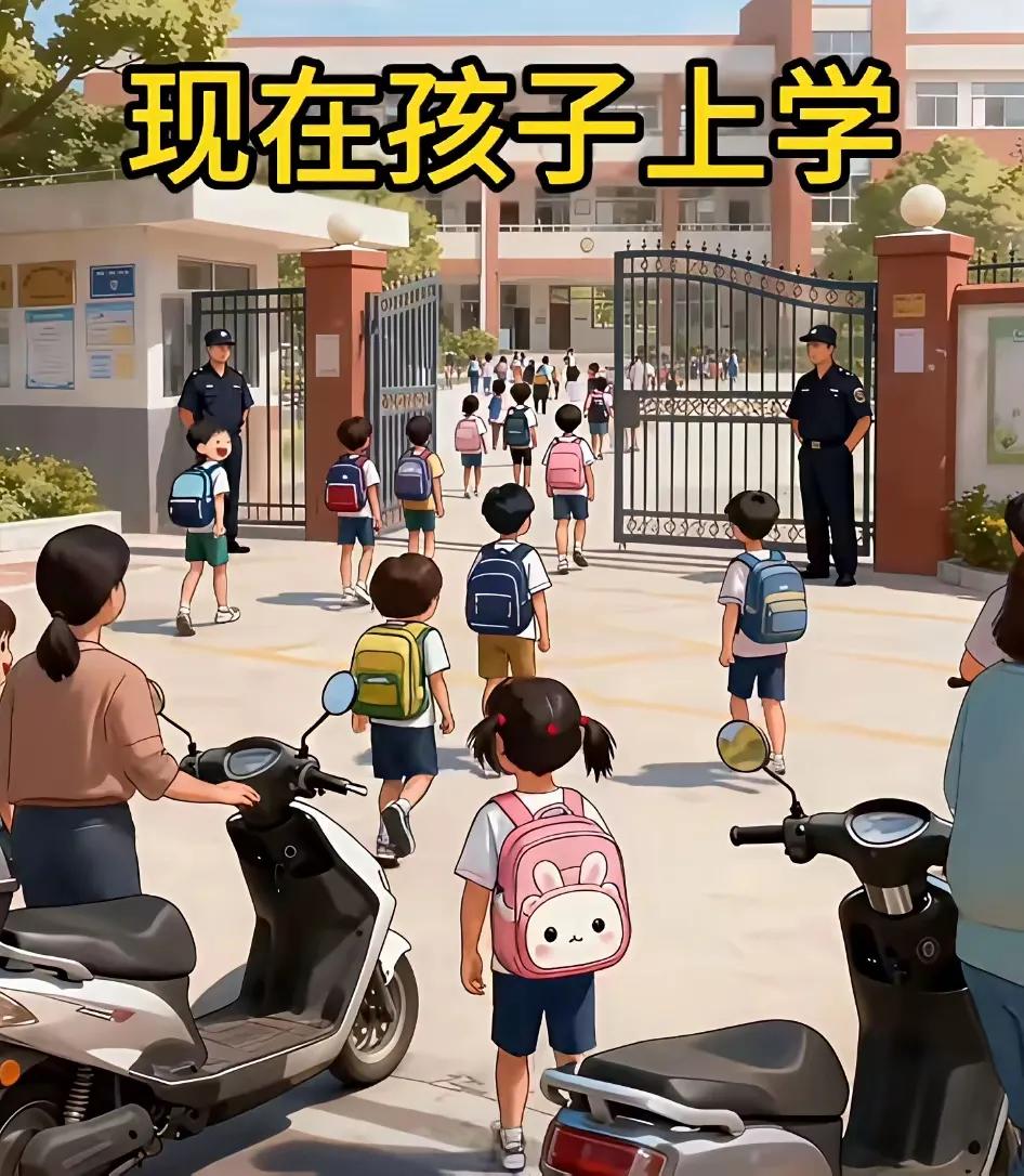 40年上学放学对比。以前的学生有安全感,可以自由上学和放学;现在的学生要警察守着学校门口。以前干净,开心,没坏人;现在哪个家长会放心?这是社会进步了?还是社会倒退了呢?大家来评评吧!