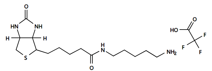 Biotin cadaverine(生物素尸胺)是一种结合了生物素(Biotin)和尸胺(Cadaverine)的化合物,用于标记含有羧基或氨基的分子,增强对生物分子的检测和富集,由于尸胺的二胺结构,Biotin cadaverine可以与其他分子进行交联反应,可进行流式细胞术、免疫荧光染色等分析,还可用于开发新型纳米探针和纳米载体,提升检测和传输效率,通常以三氟乙酸盐(trifluoroacetate salt)形式存在。