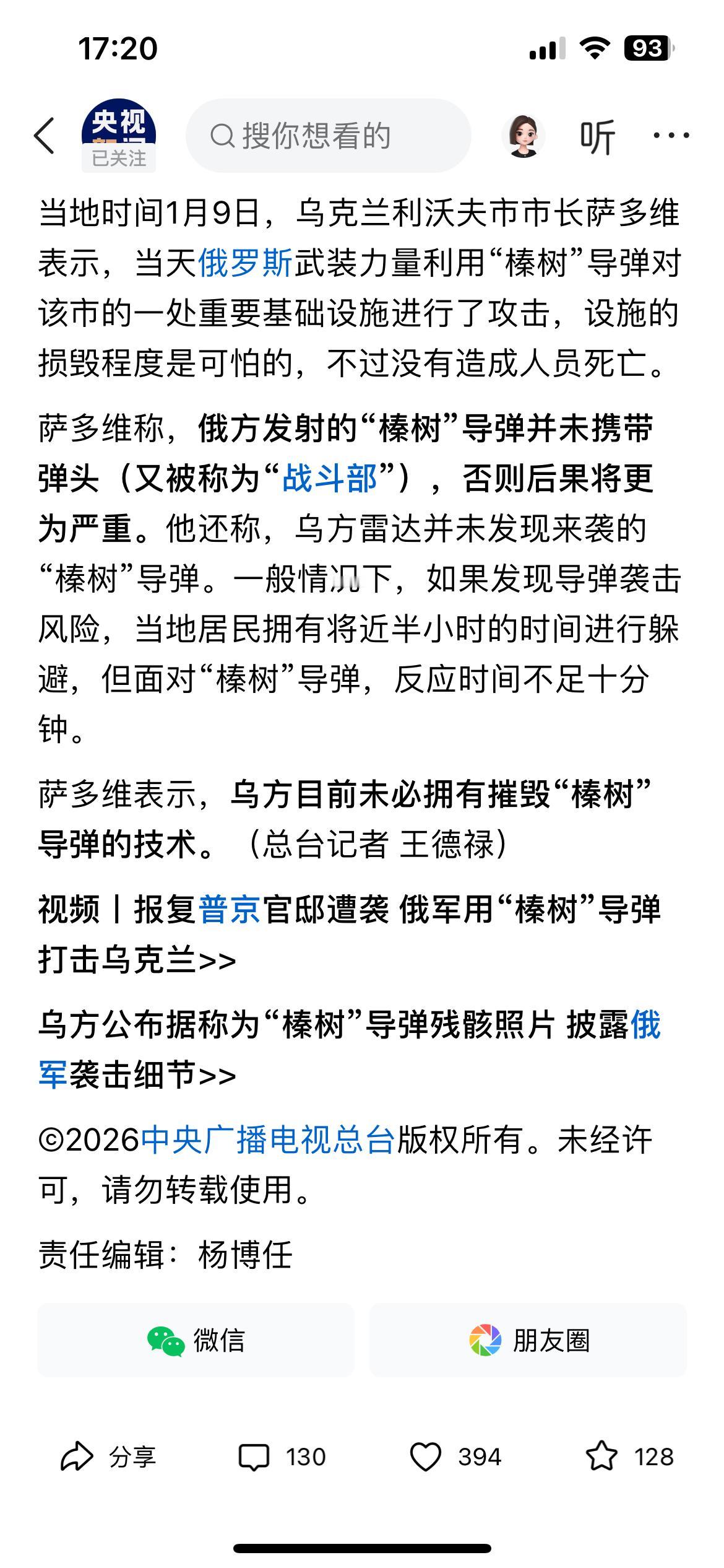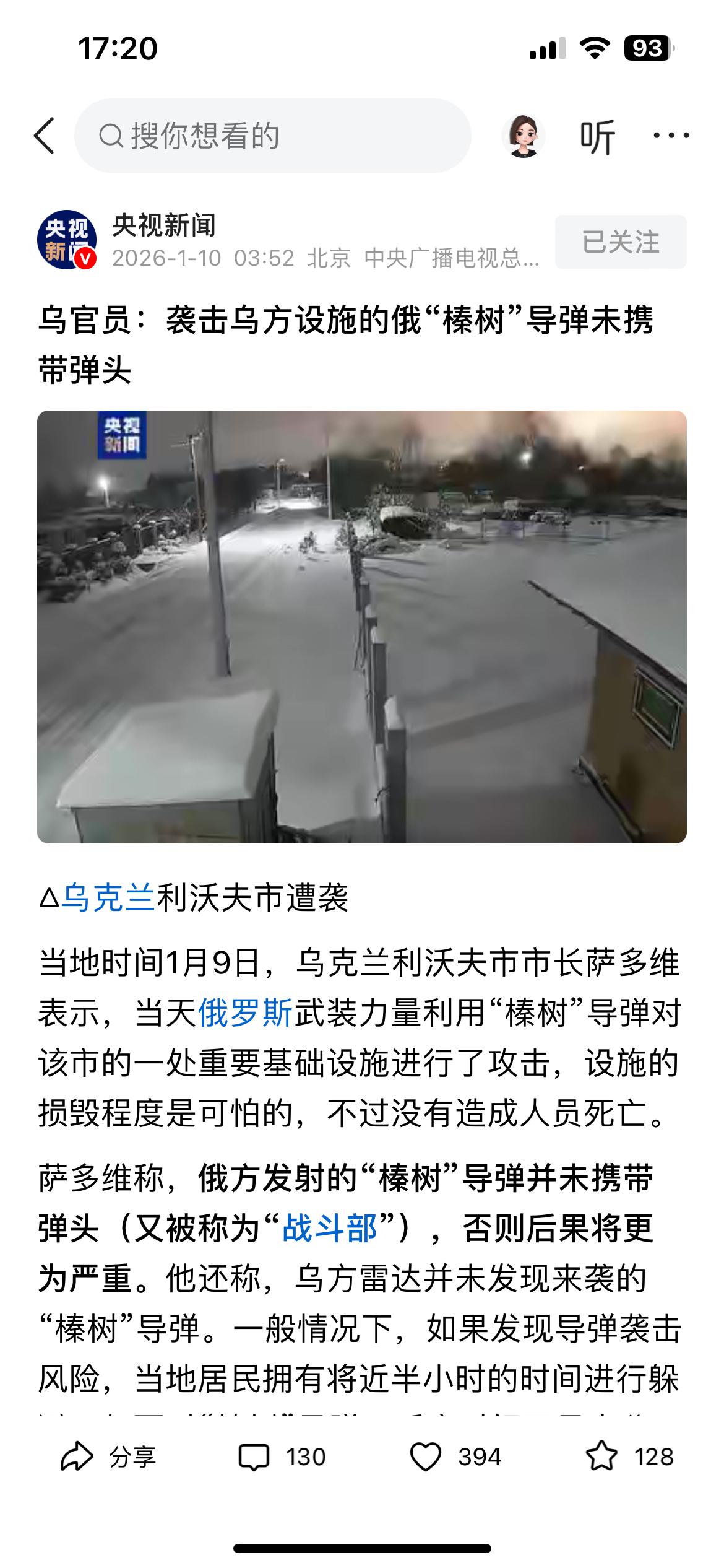 一顿操作猛如虎,一看战绩零杠五,虽然造成乌克兰设施损毁严重,但是人员无伤亡,这是俄罗斯为了保留榛树的威慑力?还是对敌人的“仁慈”? 谁能想到这犹如天火一样的俄罗斯榛树导弹,竟然未携带弹头,整半天了乌克兰人员零伤亡,倒反而让乌克兰“炫耀了一把人员零伤亡”,毕竟设施损毁以后可以重建,人命丢失却不能重来!