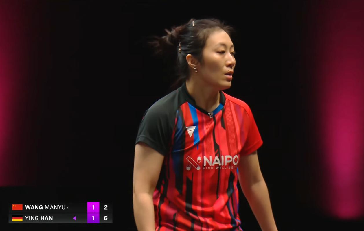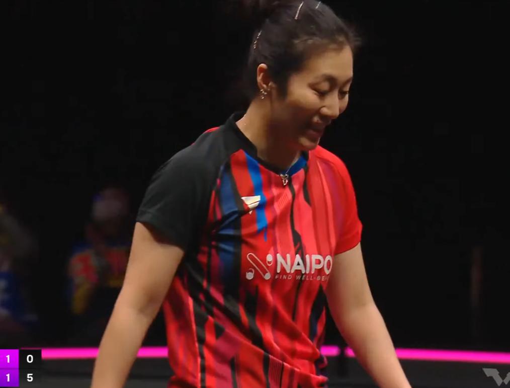 我去!王曼昱也会断电呀! 第二局8:1开局,状态那么好, 第三局0:5开局。 不过我看韩莹, 貌似没力气了。 鳗鱼咬住比分, 估计能拿下, 就是会很累。 关键时刻韩莹一个擦网球。 10:5拿到局点, 最后韩莹的大力抽,11:6拿下第三局, 总比分2:1领先。