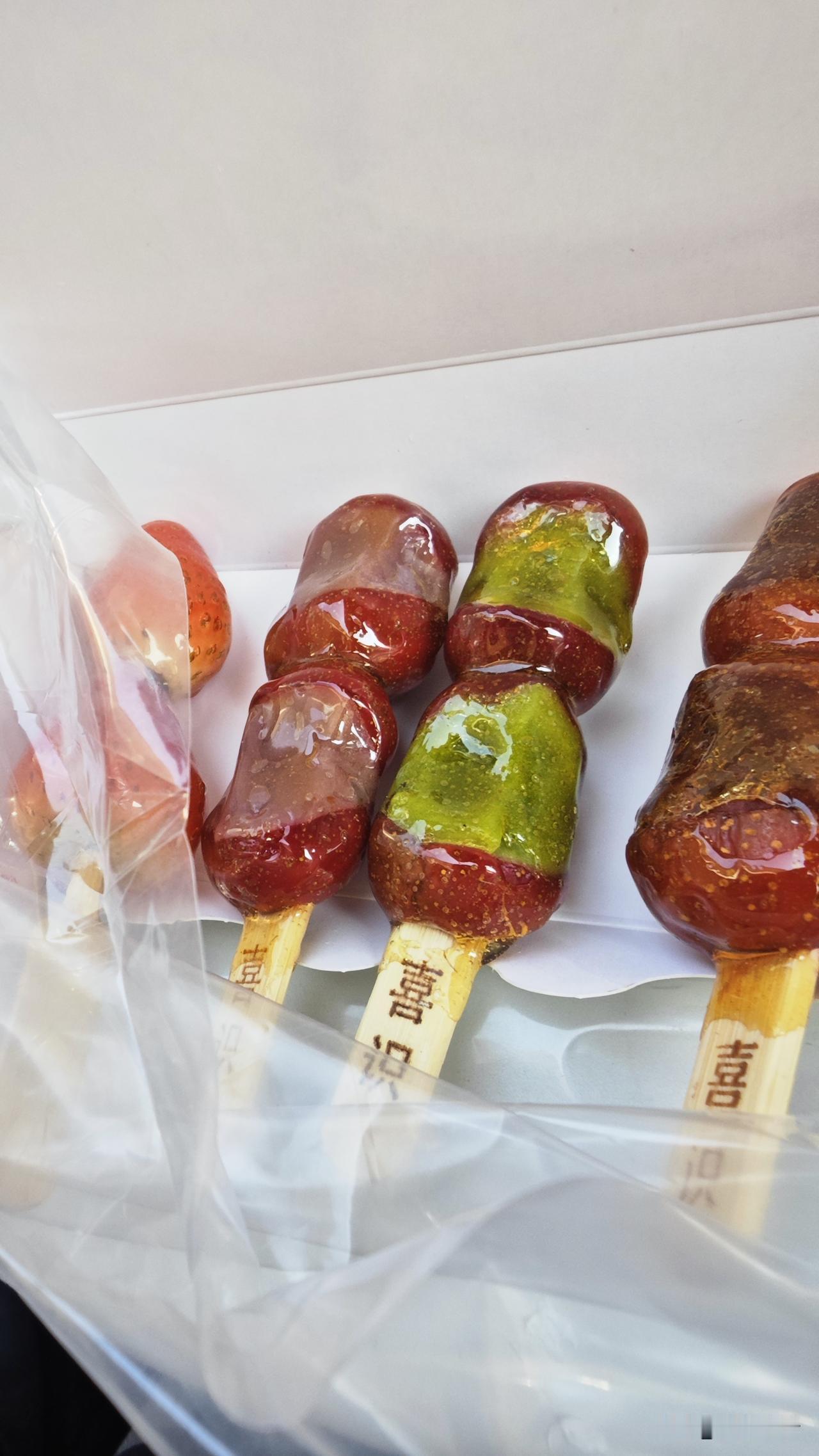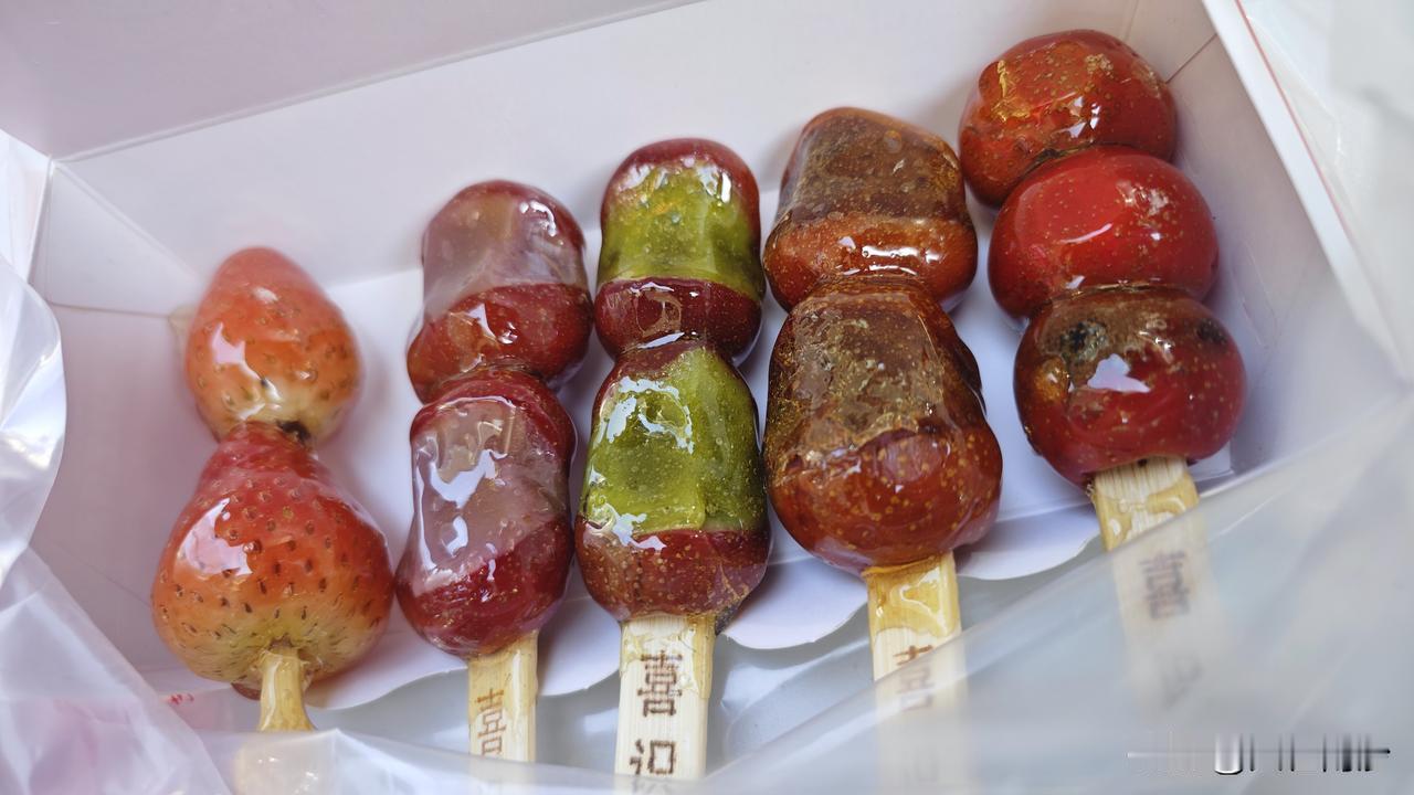糖葫芦都能做成这样了,夹心的,味道还可以,而且小串的吃起来也不腻。就是价格有点…… 25元任选5串,最后团购卖个套餐18.8元5串。感觉利润还是挺高的吧。 当然比起路边的,店里的起码干净,用料也实在点。 你有买过没呢?