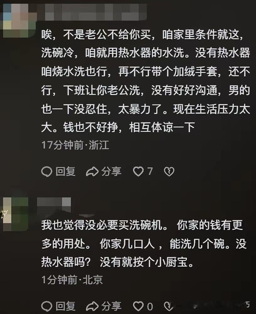 这事儿真是让人一言难尽!广东一宝妈,嫌冬天洗碗水太冷,心疼自己手,背着老公花15