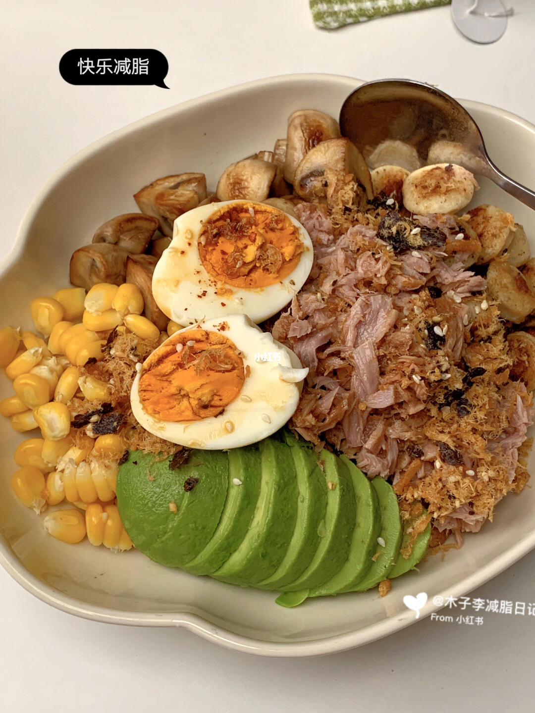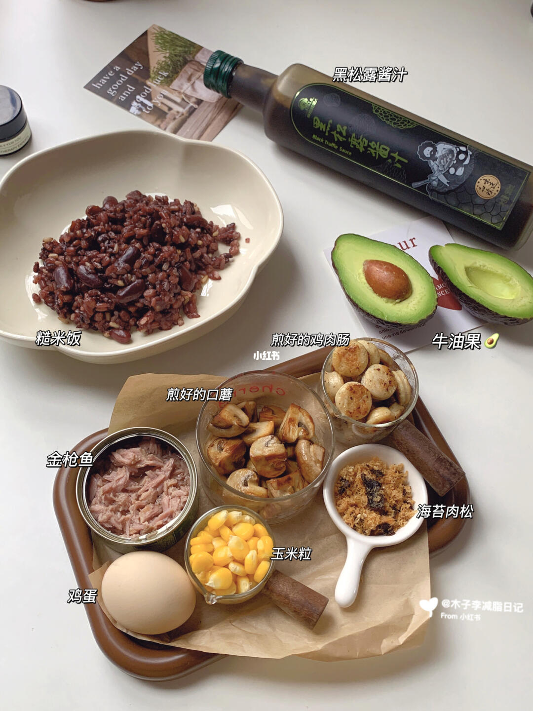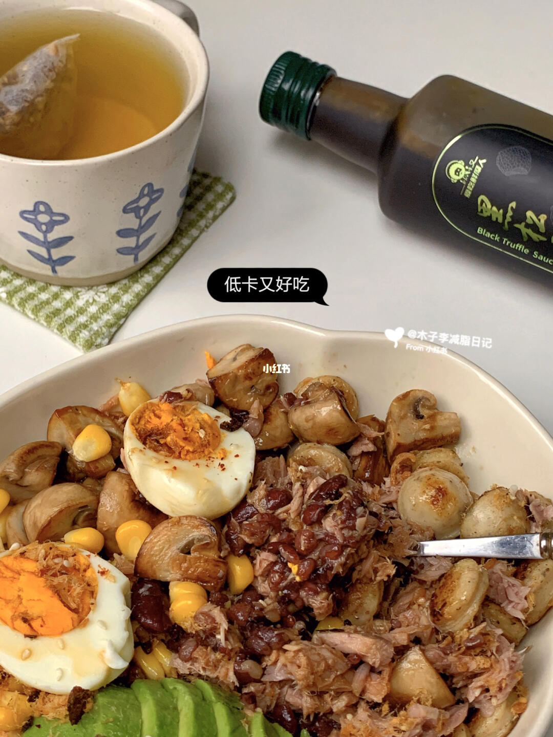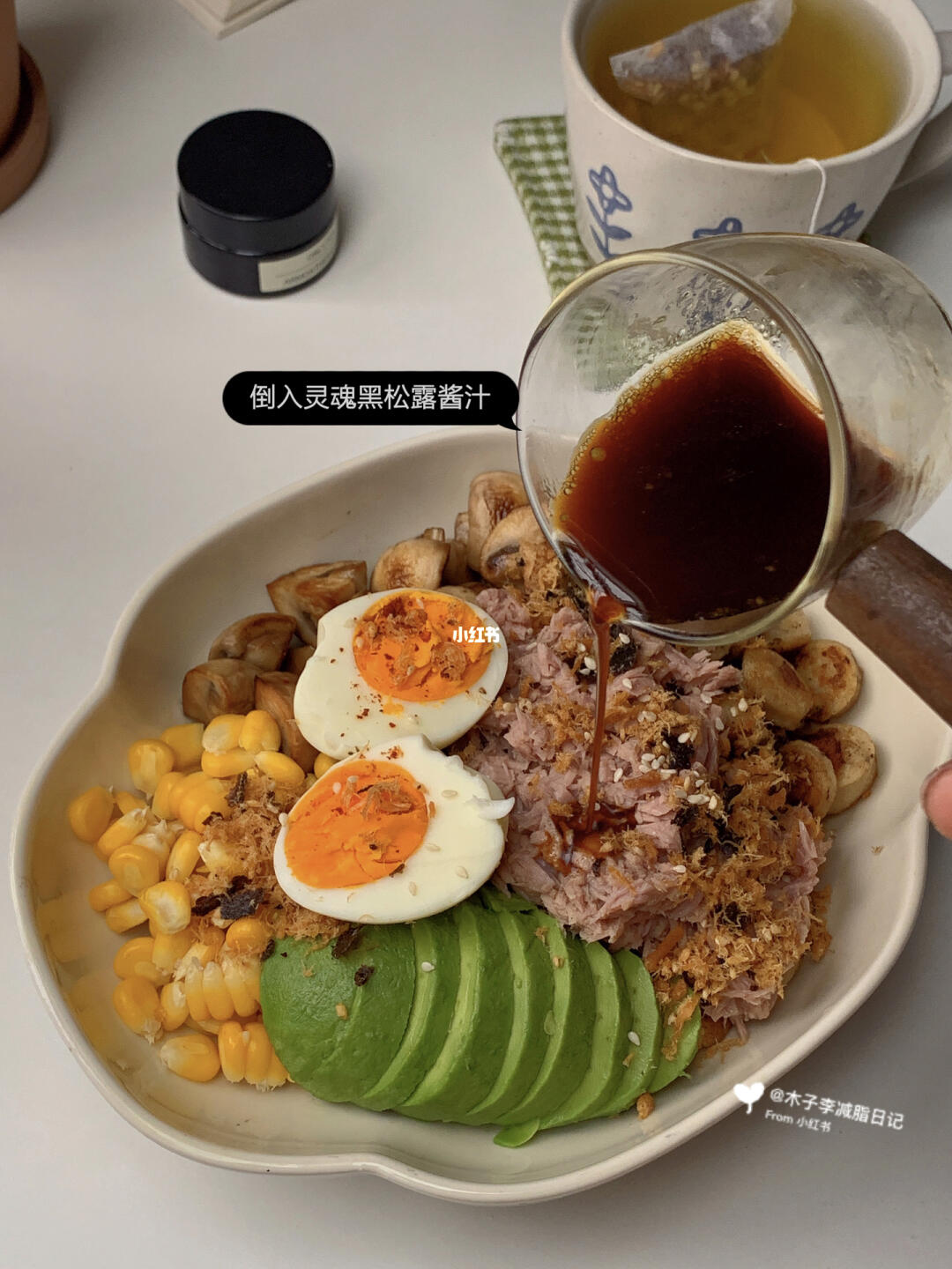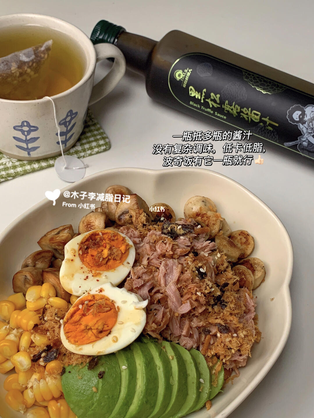 做过这么多减脂餐😋我竟然才吃这款食材多多的波奇饭🥙这样的搭配健康营养重要是很好吃,减脂期一定要吃呀,饱腹好吃😋 食材:🥗 金枪鱼➕牛油果➕糙米饭➕玉米粒➕水煮蛋➕口蘑➕鸡肉肠➕肉松 酱汁:🍶 黑松露酱汁~ ▪️水波蛋没做成就换成水煮蛋了[笑哭R]好吃就行,食材家里有啥就放啥,酱汁我用一瓶黑松露酱汁搞定,轻简低脂配方,味道鲜美h适合搭配各种减脂餐,不用另外调酱汁,我真的太喜欢啦!