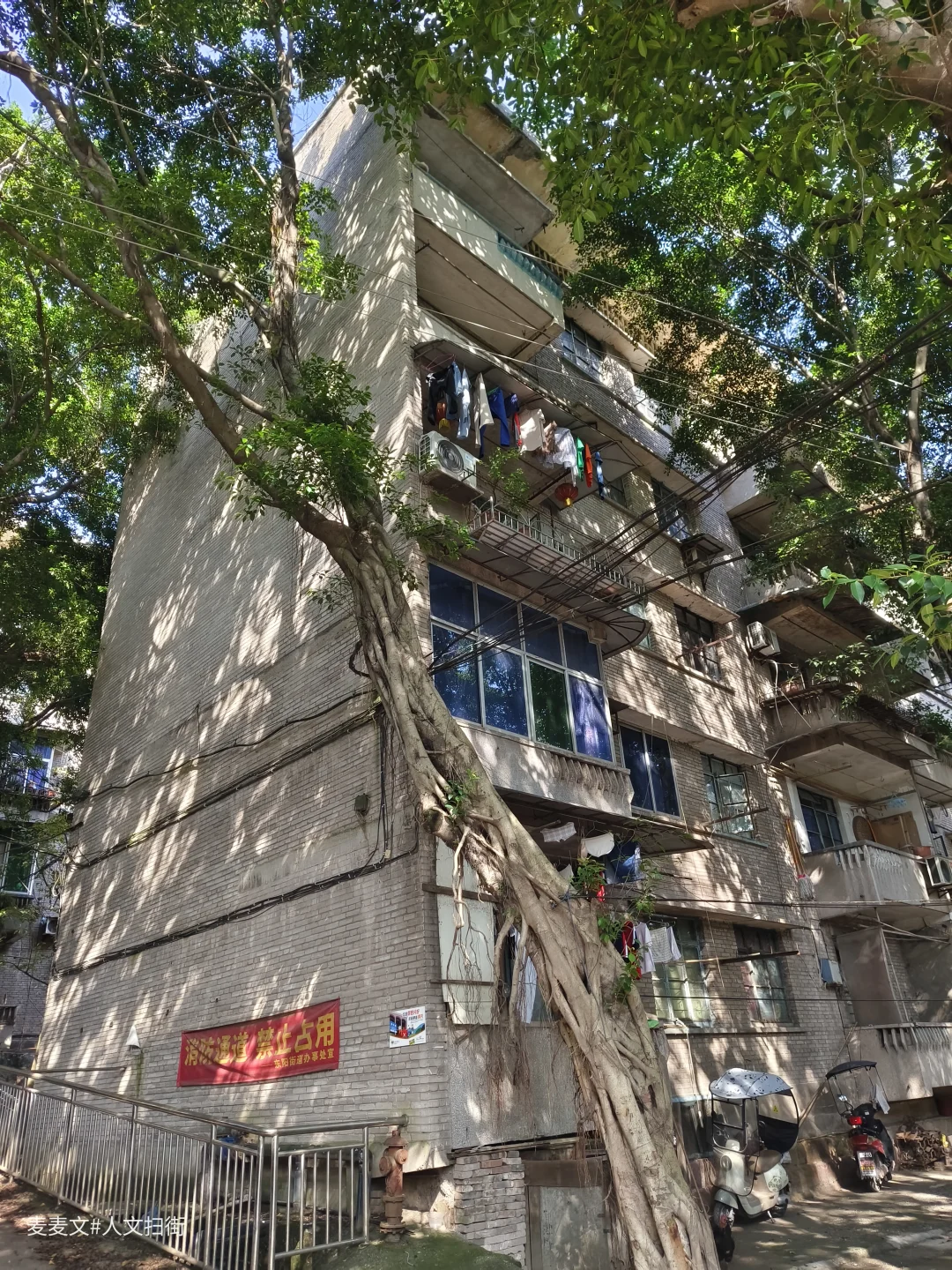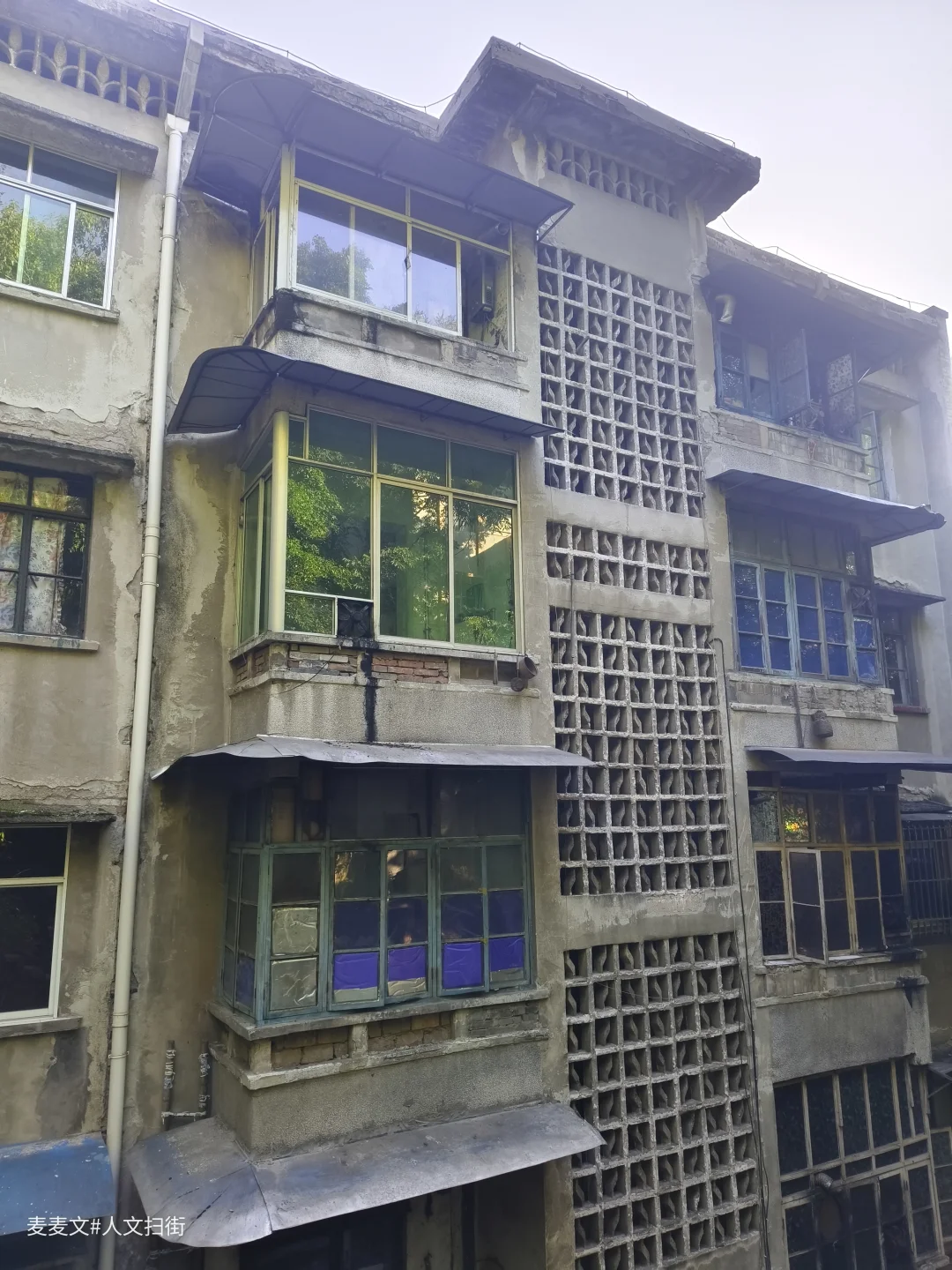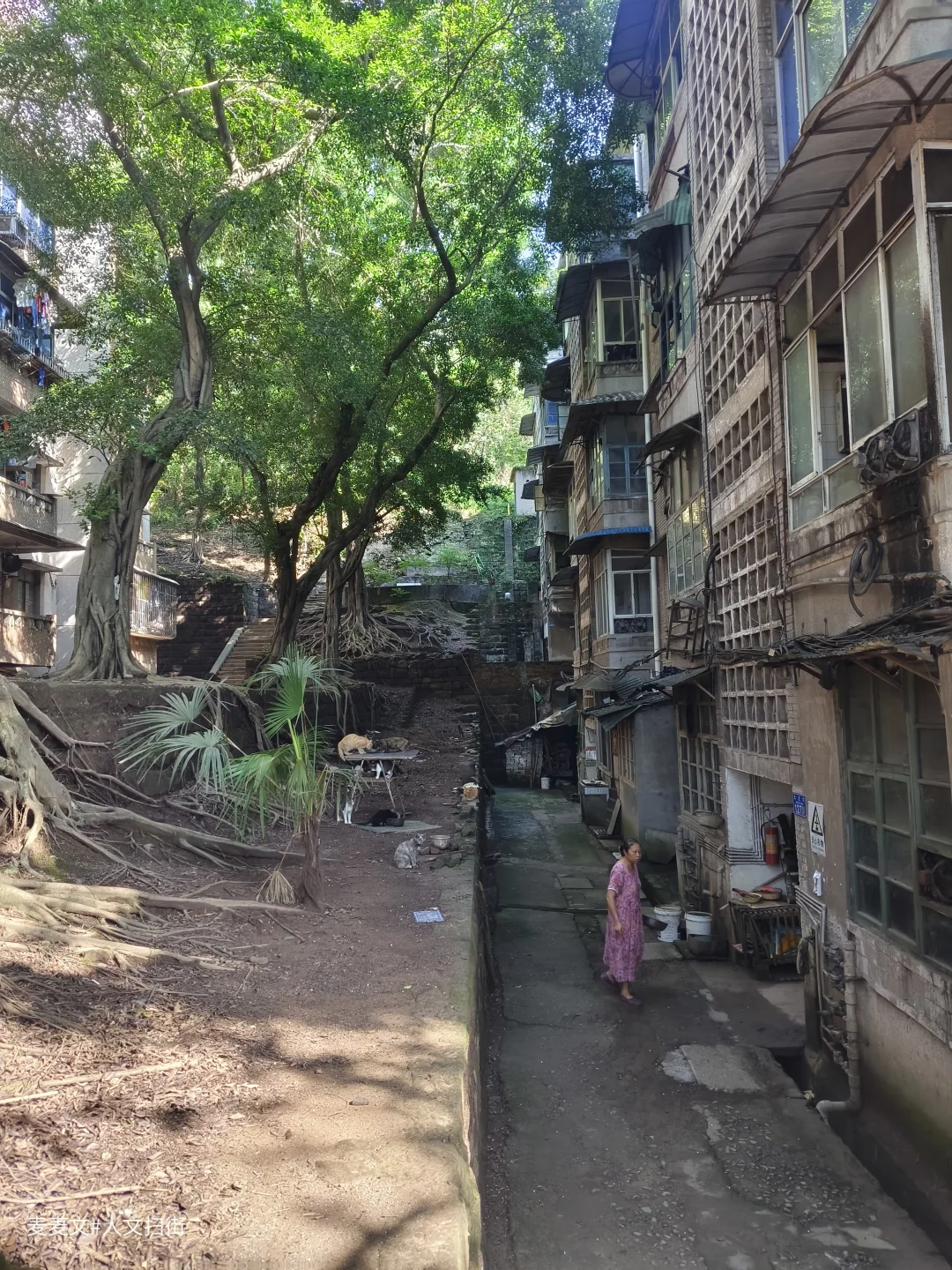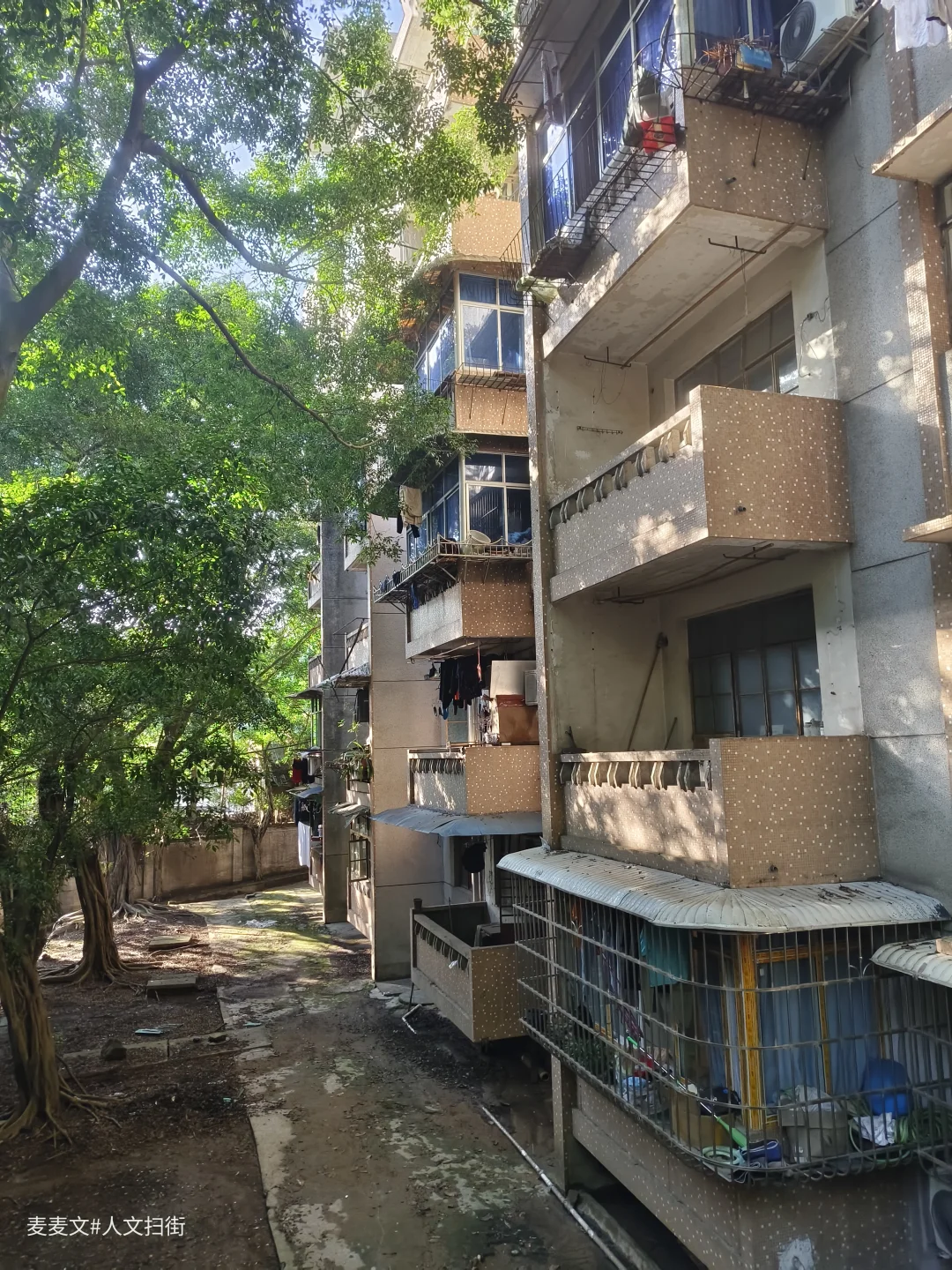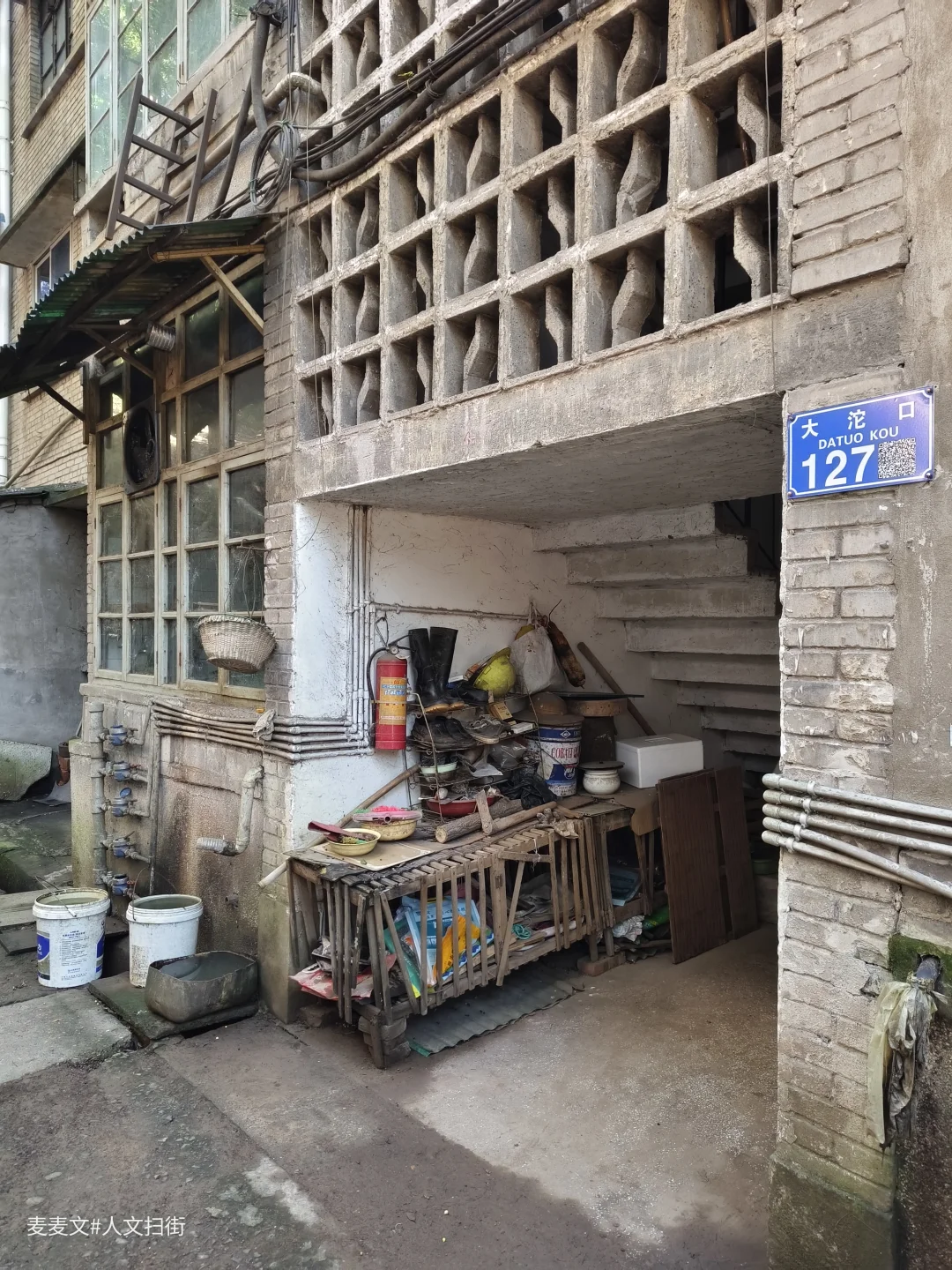 川仪十九厂家属区,紧邻厂区,位于重庆市北碚区东阳街道大沱口社区。家属院里满是岁月痕迹,楼体略显斑驳,外墙的色彩不再鲜亮,空调外机和晾晒的衣物错落,那是生活最本真的模样。老旧的阳台,有的被改造成小小花园,绿植生机勃勃;有的则堆满杂物,似在诉说着日常琐碎。