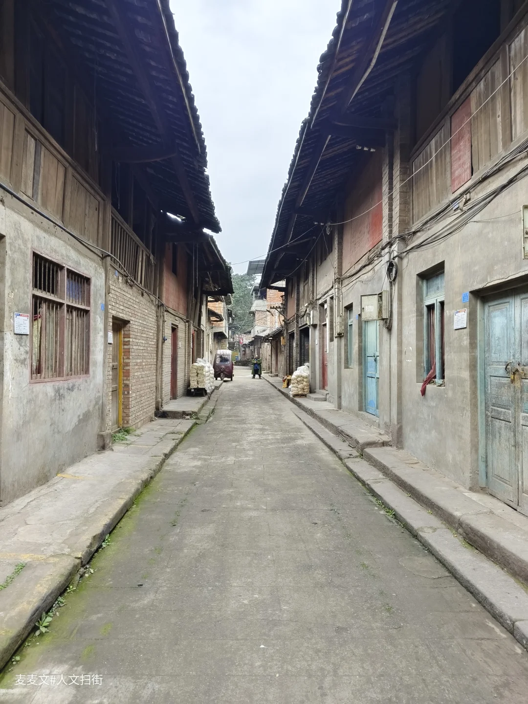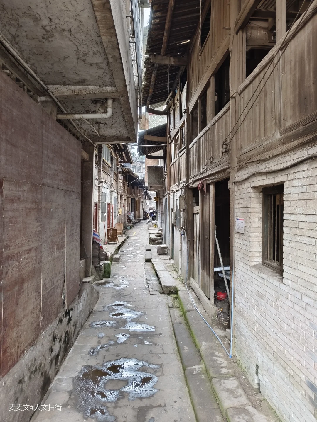 沿着横江畔前行,便来到了顺河街。这条古街静卧在横江边,仿佛被时光遗忘,人迹罕至。青石板铺就的街道,在岁月的打磨下,泛着清冷的光。街道两旁,是古朴的木质建筑,斑驳的木板墙、陈旧的门窗,诉说着往昔的故事。