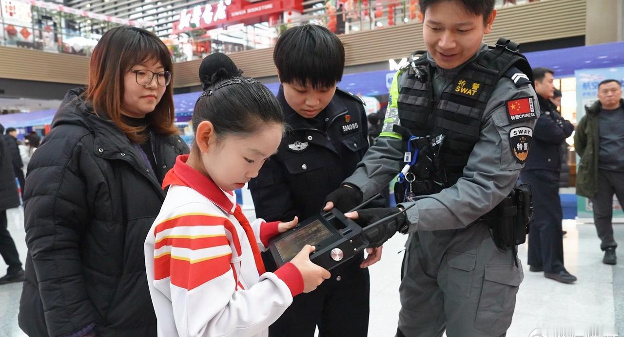 第六个中国人民警察节到来之际,在天津市滨海新区,一场以“主题集市”+“摆摊设点”为形式的实践成果展正在向社会公众开放。 在现场,各基层派出所及17个工匠人才创新工作室结合工作特色亮点,推出反诈有奖问答、日常安全防范技巧讲解、毒品致幻效果体验仪民众体验等实用性高、趣味性强的项目,手把手指导现场群众安装国家反诈APP、开通防骚扰拦截功能,展示防爆无人机、防弹头盔等智能警用装备,吸引不少市民参与。