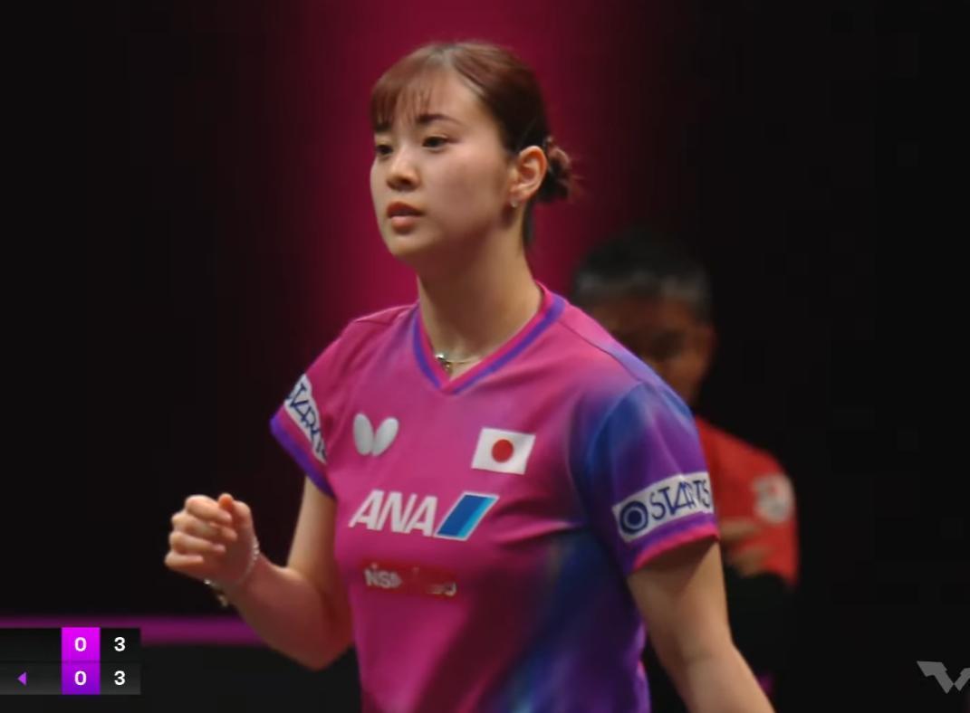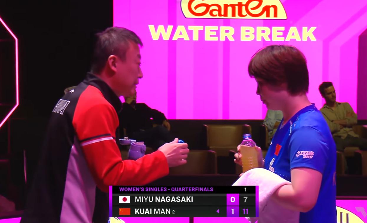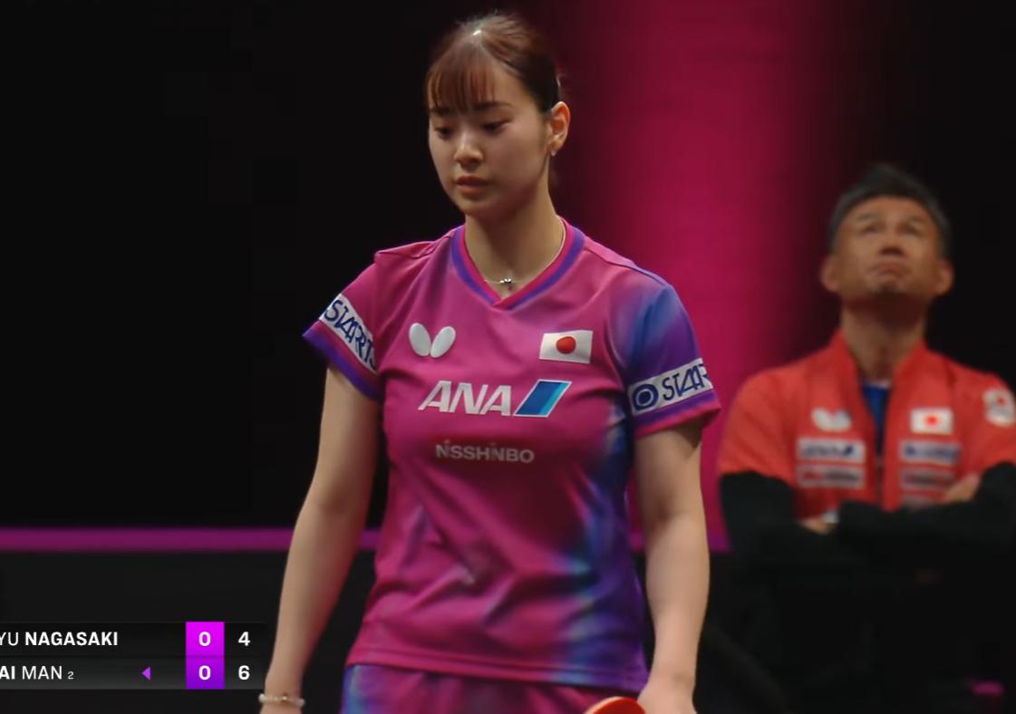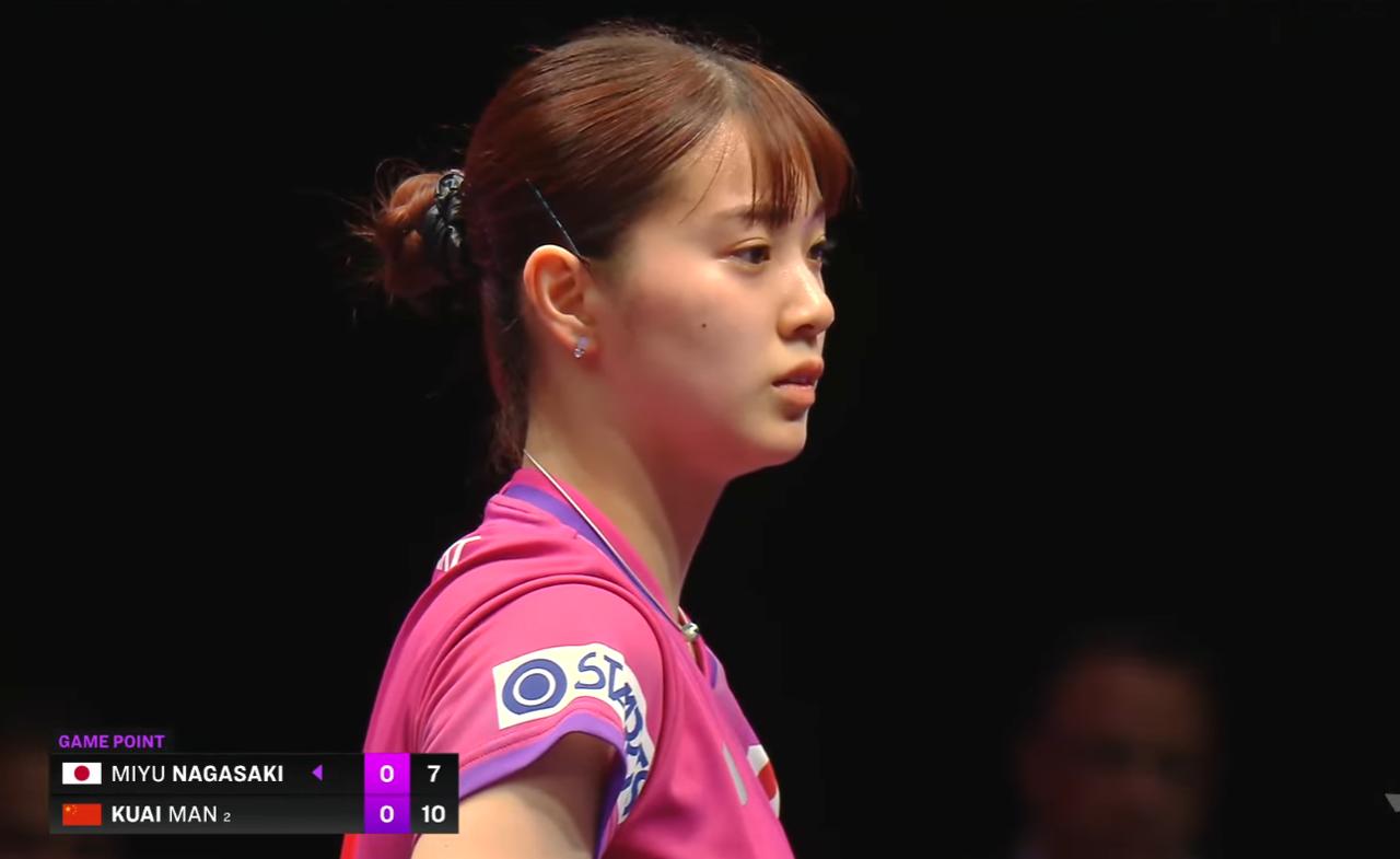 我去!长崎美柚打蒯曼居然不落下风, 难道又遮挡了吗? 蒯曼可是日乒克星, 应该是蒯曼打左手还不习惯。 局中之后, 蒯曼开始发力, 9:6拉开比分, 10:6拿到局点, 11:7拿下! 不要怪我我发蒯曼照片, 导播只追着长崎美柚拍特写。