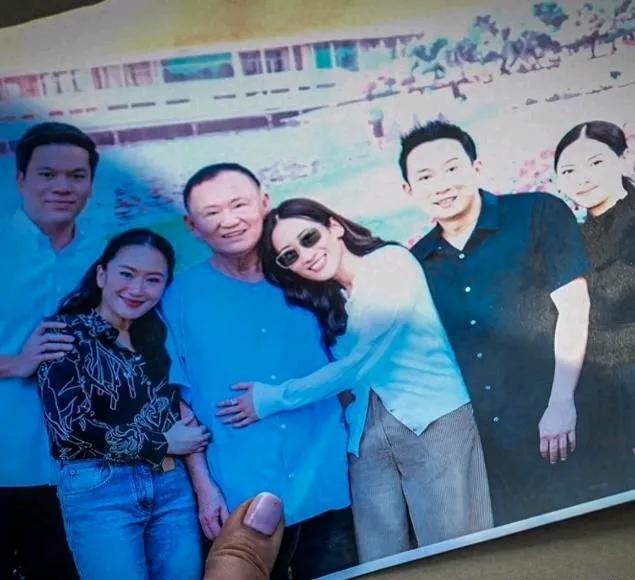 这照片不是P的吧? 翻到一张照片,看介绍是元旦前佩通坦探望他信时的合照。 他信剃发的样子,加上没领蓝色上衣,看着真的是监狱拍的。 佩通坦和姐姐萍通塔一左一右拥着老父亲,那个贴心劲儿,要不说比喻成小棉袄呢! 佩通坦老公皮塔卡站在一侧,女婿在边缘倒没什么可说的,他信儿子潘通泰和媳妇轻易很久不见去监狱一趟,依然站在萍通塔身后。这一方面说明他信家族对女儿的宠爱和护佑,一方面也看出女儿仿佛地位真的比儿子高,妹妹比哥哥受宠呢[笑哭]