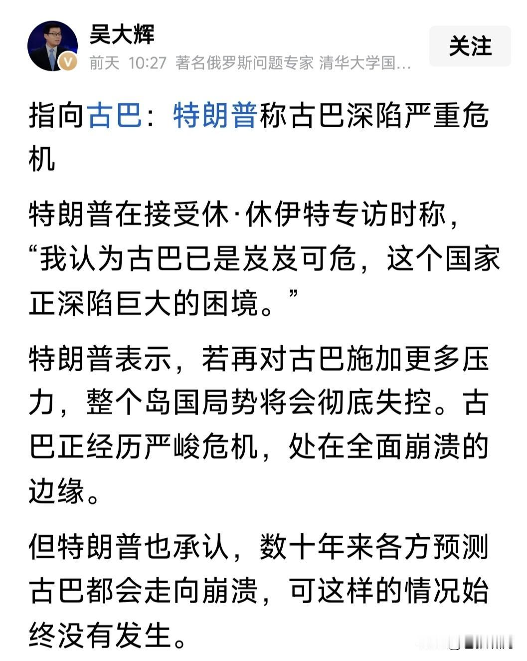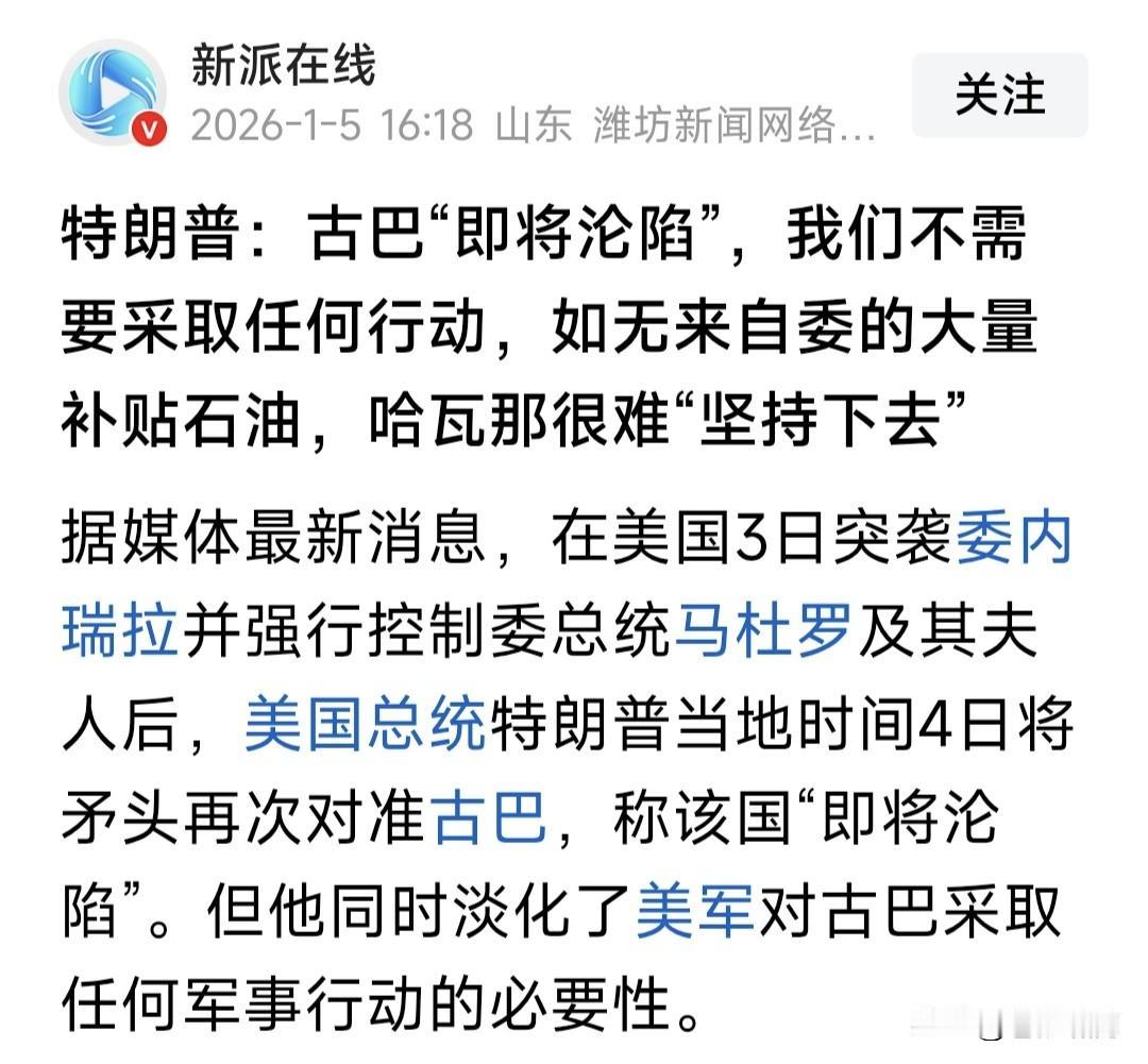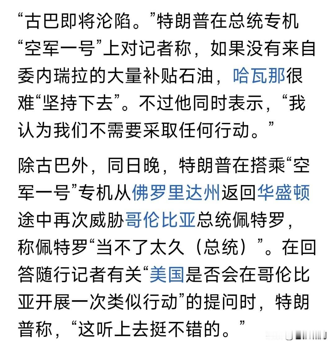 特朗普得寸进尺?刚搞定委内瑞拉,镇住哥伦比亚,又把矛头对准古巴。放言称:不用美国