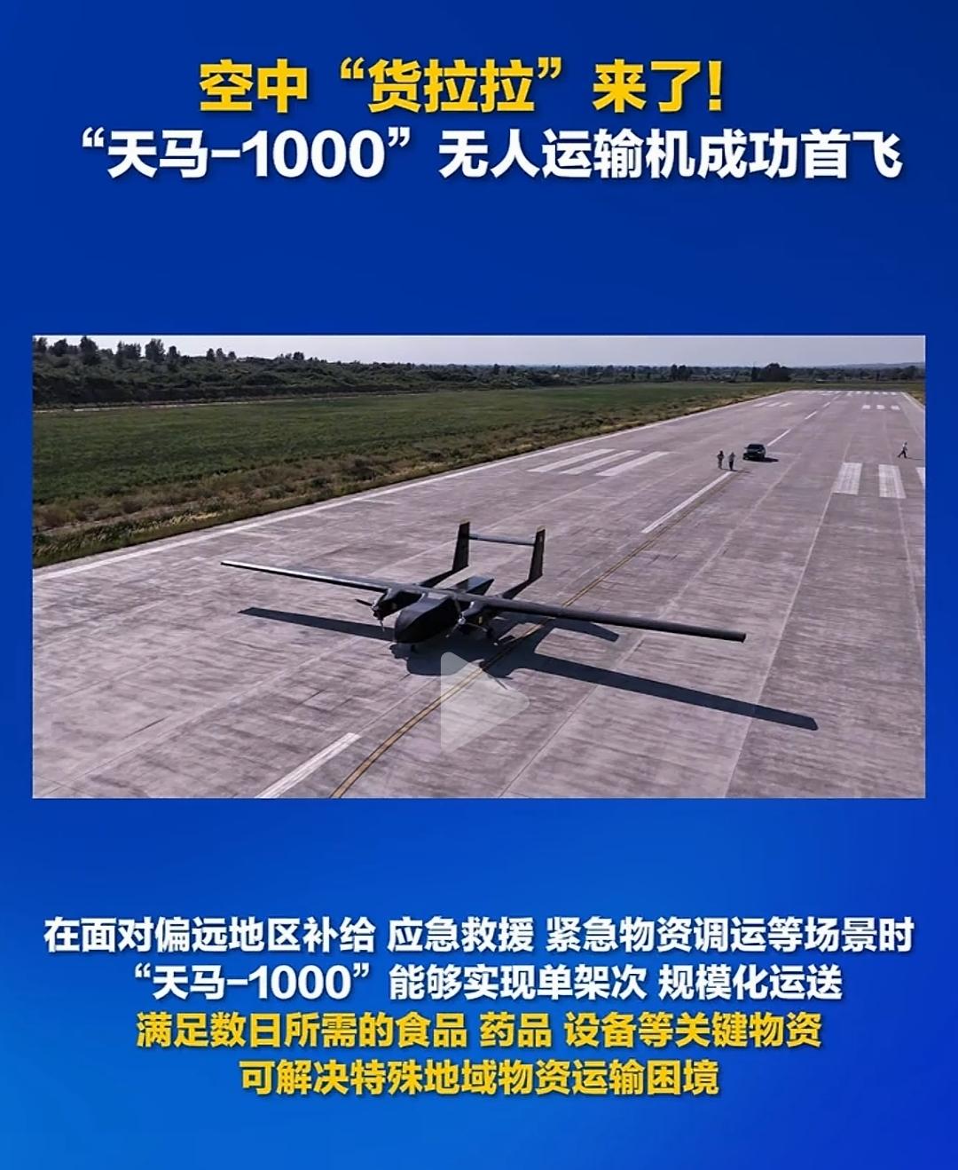 天马-1000无人运输机来了。滑跑距离小于200米,作战距离,哦,不对,是飞行1