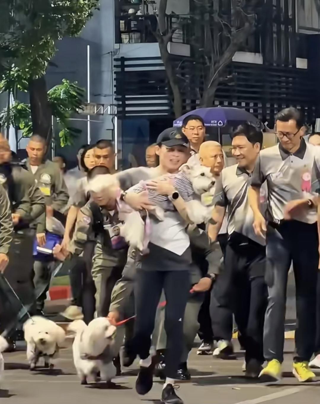 她依然是最靓王后!苏提达王后素颜出镜,带着她最爱的小狗参加跑步比赛。 镜头前的苏提达头戴运动帽,身着运动服,肤色真健康啊。那灿烂的笑容忒适合竞技场的热烈氛围。苏提达虽然是素颜,但是她的美别人无法取代,运动女人最美啊。 苏提达哪是牵着狗跑步,分明是狗带着她跑。人与狗之间相处太和谐了。这里的跑步比赛氛围轻松,充满快乐!