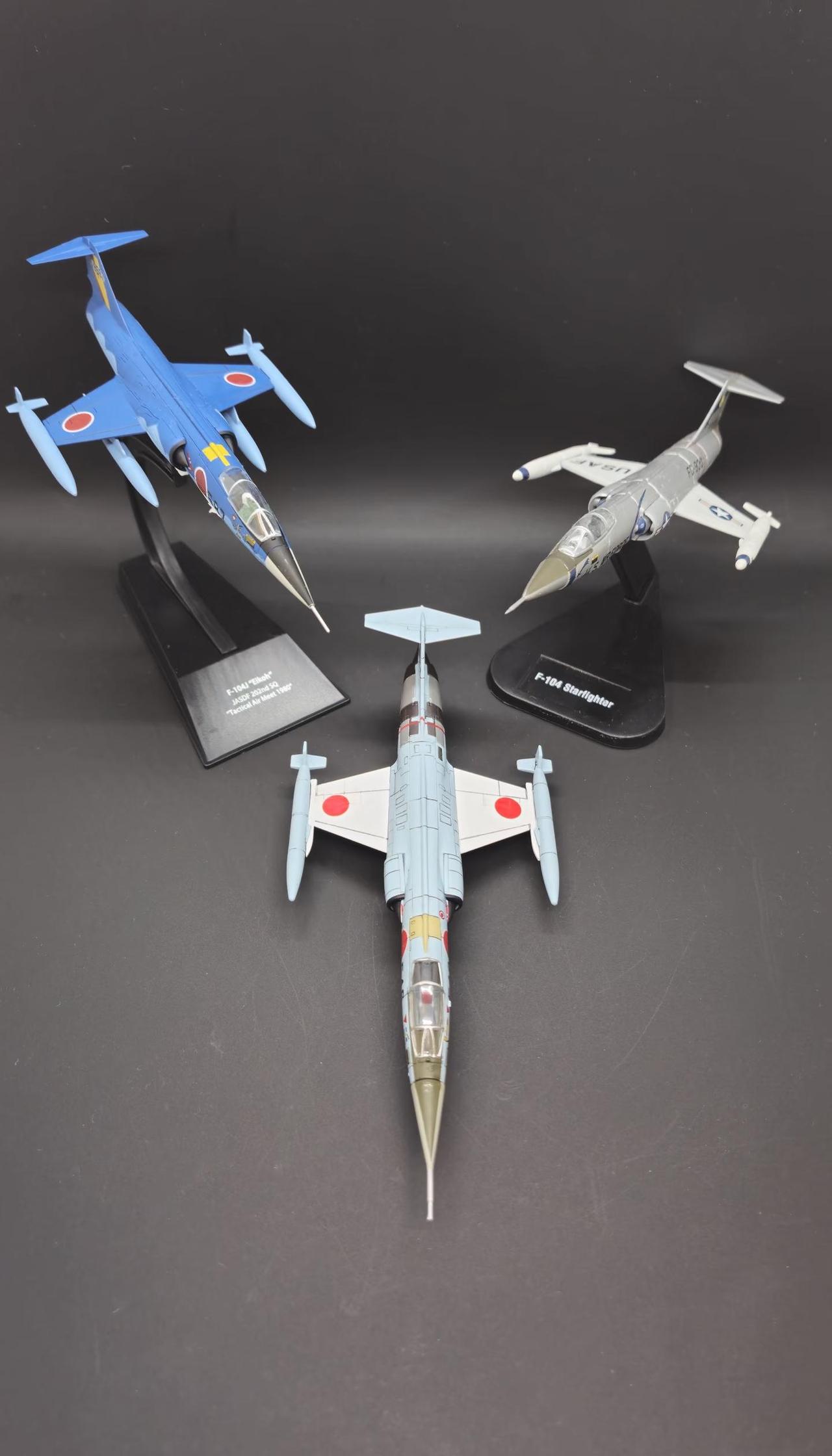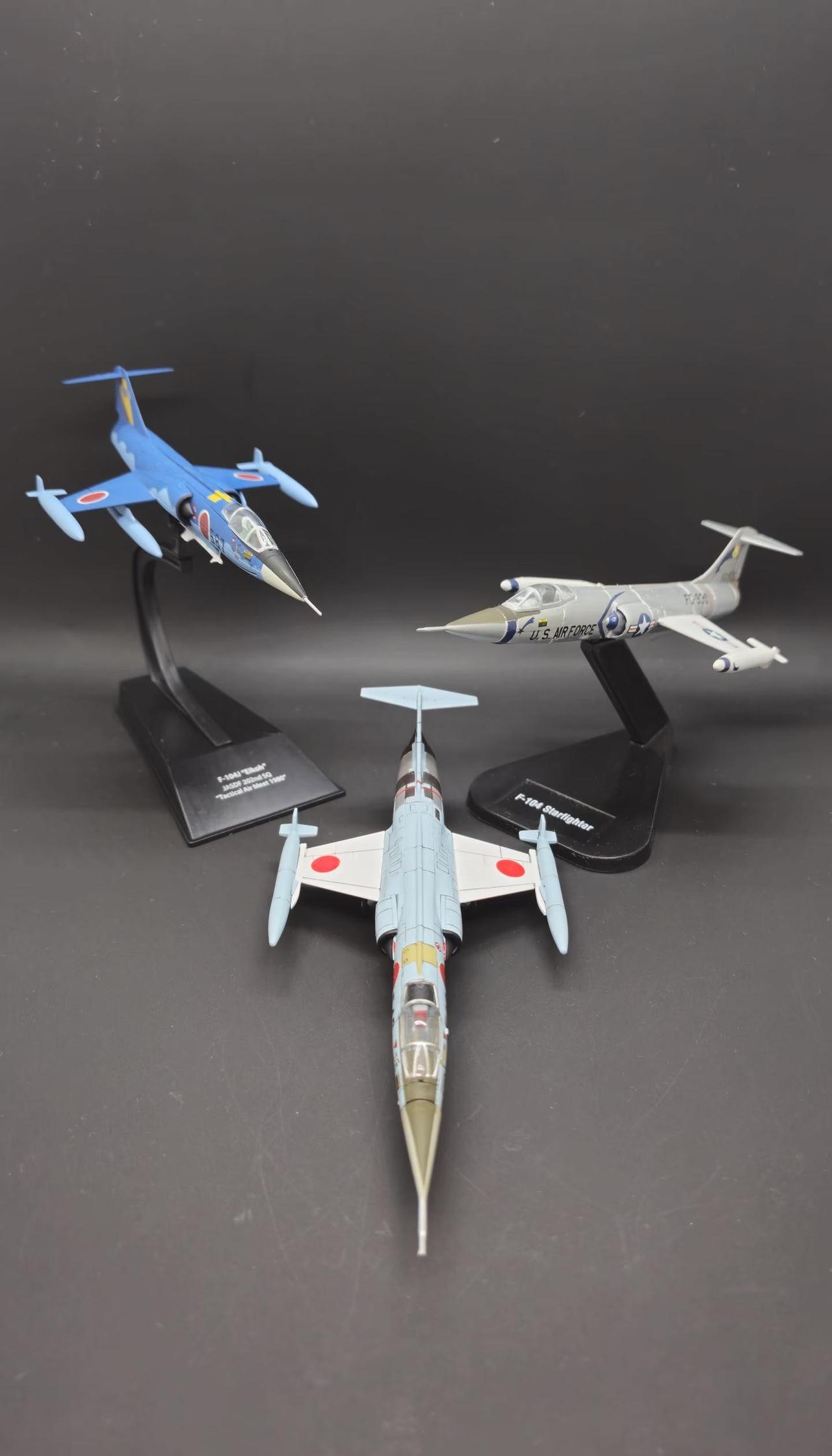 1/100 戰機模型 空自 F104 ⑶ 分享一下1/100 空自模型 F104作為其中一款經典高速二代機,在各美國盟國中曾大量服役,但事故頻發被人稱為寡婦製造機。細長的機身就像載人導彈。 1/100 F104中最常見的是日本和美國塗裝。而空自版有經典銀白塗裝外,海洋迷彩的F104j 在機腹掛載Aim9。 战斗机 飞机模型 军事 玩具模型 武器装备 航天 飞机 模型 F104 航空