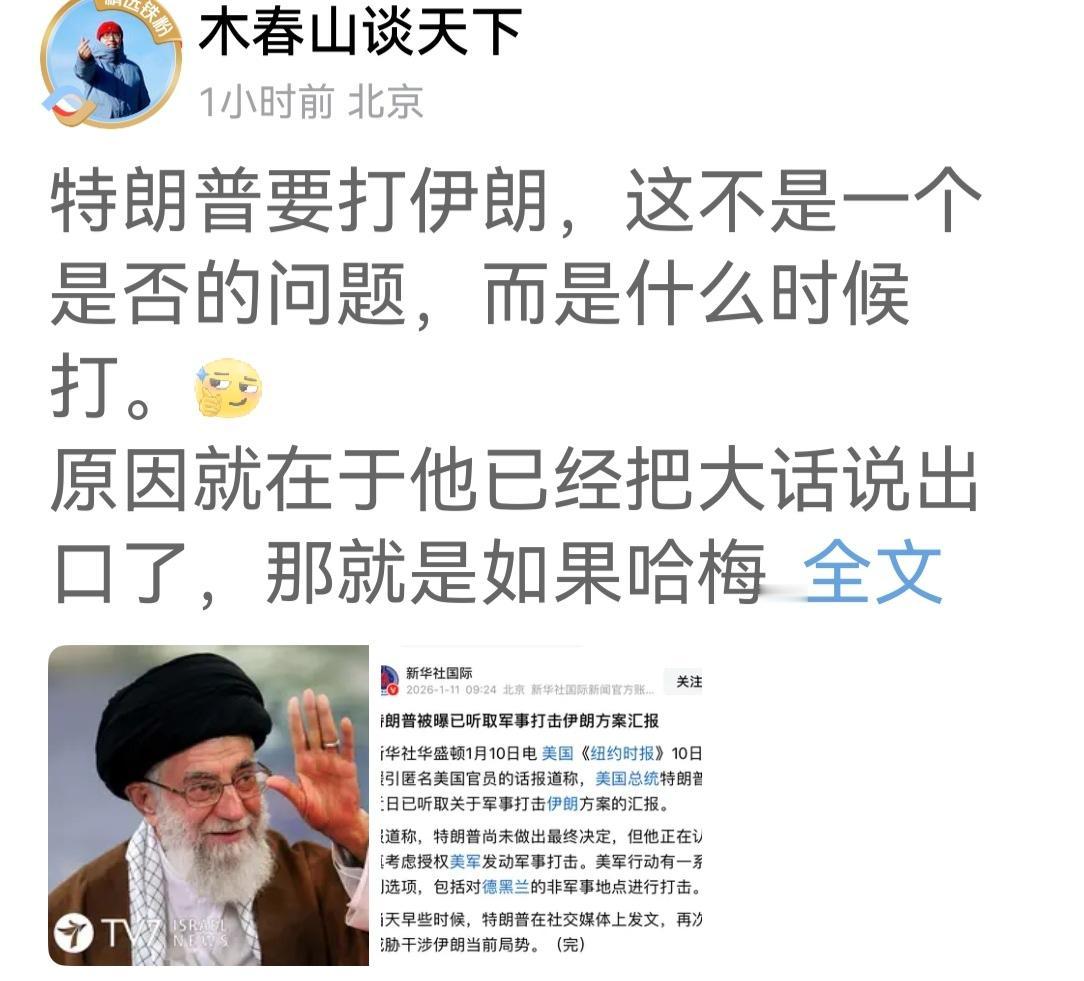 特朗普打不打伊朗,难说,因为特朗普的话是多变的。但以色列很有可能在某个时刻时伊朗发出致命的打击或斩首行动。现在对以色列来说,是历史性机会。