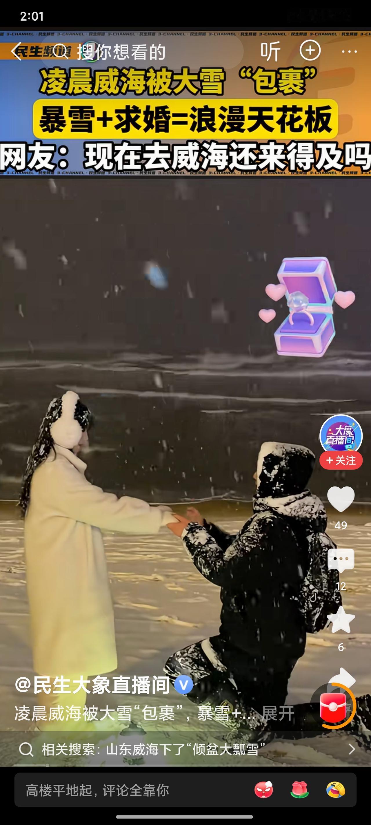 威海这波暴雪也太顶了!谁能想到凌晨能下出“黑雪帘”,密密麻麻的雪片砸下来,夜色里看过去跟撒了把碎玉似的,有网友说第一眼以为是大理石板,本地人都吐槽“这雪下得也太实在,跟不要钱似的”,说实话这阵仗我隔着屏幕都觉得震撼! 积雪直接飙到20厘米,一脚下去直接没小腿,软乎乎的踩起来巨解压!最羡慕那些来旅游的朋友,浙江有个小姐姐半夜到威海,拉着闺蜜去海边玩雪,从深夜嗨到凌晨2点,海边还有人玩够3小时才舍得走,直呼“来威海一趟血赚,雪海秘境名不虚传”! 威海北站更热闹,刚下高铁的人直接就地开启玩雪模式,堆雪人、打雪仗,小朋友在雪地里打滚撒欢,那股快乐劲儿隔着屏幕都能感受到~ 刷评论区全是羡慕声: “南方人哭晕,长这么大没见过这么厚的雪” “威海这是把冬天的浪漫焊死了吧”“求一份威海玩雪攻略,立马出发”! 不过得说句实在的,暴雪虽美但别大意!多条高速积雪结冰封路了,暴雪预警都升到橙色了,我觉得赏雪玩雪没问题,安全一定要放第一位,非必要别出门,出门前必查路况! 有没有去威海偶遇这场暴雪的朋友?来分享下现场有多快乐~