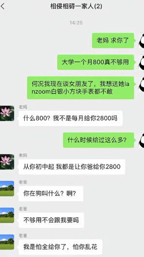 你在狗叫什么?啊?不够用不会跟我要吗,我是怕全给你了,怕你乱花