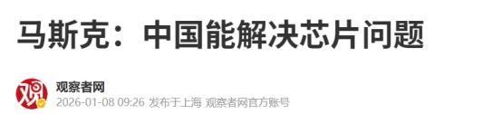万万没想到!2026年1月8日报道,马斯克在发表惊人言论后,再抛争议性言论:中国能解决芯片问题! 作为全球首富,马斯克对我国有一些敏锐的判断。他的这些判断往往是出人意料,更是令国际为之惊讶。 例如马斯克曾语出惊人地表示,中国从未崛起,只是回归历史地位。又例如在近日,马斯克表示,他所说的那些设想都被中国实现了。他所说的设想是什么呢? 2026年1月6日的时候,马斯克透露,他曾建议美国政府去大力发展电动汽车,光伏储能等。但美国政府并没有听得进去,相反中国政府却选择去大量发展。以至于出现他所说的设想,被中国实现这一情况。 马斯克的这一观点,带来了极大的讨论热度。有人对他进行抨击,认为中国发展跟他没有任何关系。 但也有人认可了他的说法,希望他能够给出更好的建议。就在马斯克这一言论带来的热度还未平息时,2026年1月8日时,媒体的一篇报道再度引起国际关注。 据媒体报道,马斯克公开表示,中国将拥有比其他任何国家都更多的电力,也可能会拥有更多芯片。并强调从当前发展趋势看,中国在AI算力上将远远超过世界其他地区。 这让人联想到了在2025年年初,突然爆火的DeepSeek。当时DeepSeek一经问世就引起了国际的高度关注,不少国家更是将其纳入了禁令的软件名单中。 现如今中国科技成果能够如泉涌呈现,实际上是中国多年的厚积所致。当其他国家因为一时的发展而沾沾自喜时,中国却一直在默默的培养人才。 对此,您怎么看?欢迎评论区留言您的看法,我们一起讨论一下。 (信息来源:马斯克:大力发展电动汽车、光伏储能,我说的那些设想都被中国实现了-澎湃新闻) (信息来源:马斯克:中国能解决芯片问题-观察者网)