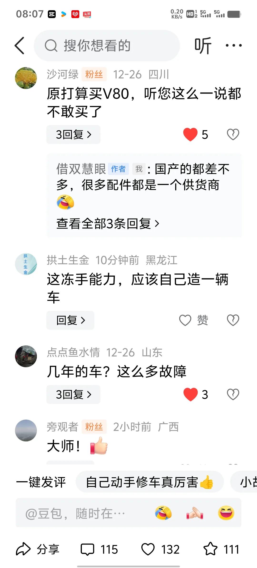 听我一句劝,现在看车评,千万别被网上那几个故障案例就给整怕了。 一两个车主把修车过程拍上网,底下立马就有人刷“这品牌不能碰”,好像全世界的车都得跟工艺品似的,一颗螺丝都不能松。 要我说,这事儿你得反过来看。 前几天又刷到个大通V80的车主,在那儿细数自己车出过的小毛病。底下评论那叫一个热闹,好多人说“看完不敢买了”、“质量这么差”。 可你再仔细瞅瞅人家原文,发现没? 人家通篇核心就一个意思:**我不后悔,这车买得值。** 为啥? 因为人家心里有本明明白白的账。 这位老哥是2014年底买的车,中顶短轴,当时落地12万6。那时候新全顺啥样?外观老气,空间还憋屈,关键价格得往上再窜好几万。依维柯、御风那些,在他眼里就跟货车没啥两样,内饰糙得很。 说白了,当时同价位里,大通V80是内饰做得最像样、外观最顺眼的一个。 性价比这笔账,他十年前就掰扯清楚了。 再说油耗,这更是一笔硬账。 人家自己记的,一趟东北边境线自驾,整整一万公里,油钱花了5500块。算下来一公里五毛五。 那会儿油价还在6块3到7块1之间晃荡。他这车自己改成了房车,整车重3吨。 一个3吨重的大家伙,跑长途每公里烧五毛五,这是个什么水平? 你随便找个同尺寸的轻客车主问问,心里立马就有数了。这根本就不是“费油”的范畴,这得算“会过日子”。 最狠的是安全这事儿,没法算账,但能救命。 车主自己在广西高速上遇过真事。凌晨天没亮,导航给指到个断头路,等发现是下匝道急弯时,刹车已经来不及了。 他是一边猛踩刹车一边打方向,自己感觉车都要翻过去了。要知道,他车顶还顶着两百多斤的太阳能板呢。 结果呢?车愣是没翻,稳稳抓在地上。 用他的原话讲:“这次相当于大通V80救了我的命。” 就这一件事,在他心里,后面所有的小毛病、小故障,全都一笔勾销了。什么传感器报警、偶尔的异响,在“能把命保住”面前,那还叫个事儿吗? 再说了,他后面也点透了一个理儿:这些小毛病,根本不是大通独有的病。 现在的国产车,尤其是这些轻客,核心的发动机变速箱这些大件,反而都挺稳。最容易出幺蛾子的,都是那些边边角角的小配件。 这些配件哪来的?长三角、珠三角一堆供应商做的,它们不光供给大通,也供给别的品牌。 凭什么觉得装别家车上就没事,装大通上就一定坏?没这个道理。 真要较真,你去任何一家4S店的维修车间蹲半天,甭管啥品牌,都能看到排队修车的。只是大多数人修好就开走了,谁有功夫天天上网写维修日记? 所以啊,看车这事儿,特别是这种工具属性的轻客,账得算大头的。 你算空间,大通V80那种方方正正的盒子造型,改床车改房车,就是比很多流线型的车能装,这是物理优势。 你算价格,同样的预算当时能不能买到更体面、空间更大的?这是现实选择。 你算核心体验,安全、油耗、可靠性,这些关乎根本和钱包的,它到底交没交足功课? 把这些大账算明白了,再去掂量那些“通病小故障”。 你会发现,很多选择压根儿就不是选择。 就像那位车主,十年过去了,心里那杆秤,依然压得稳稳的。