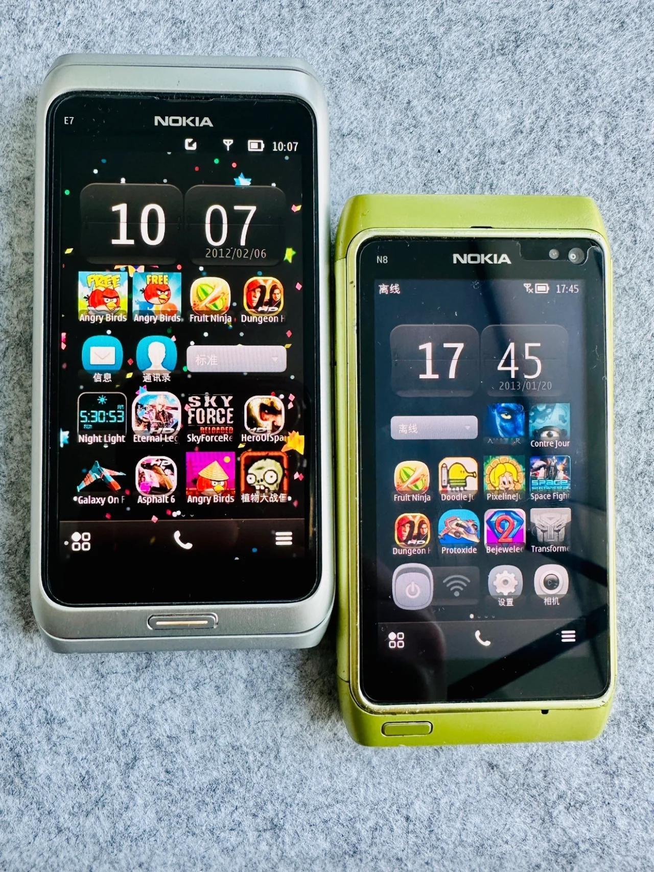 诺基亚两款经典的机型——N8和E7,有用过的嘛?当年N8这机子真是梦中情机啊!看到都想要,在那一年满大街都是山寨机和各种键盘机的年代,这种大屏智能机简直堪称降维打击。可惜诺基亚一直没把生态做起来,塞班系统签名太难弄了。后面诺基亚又去折腾WP,塞班逐渐沦为弃子,经典的N系列也不了了之了。