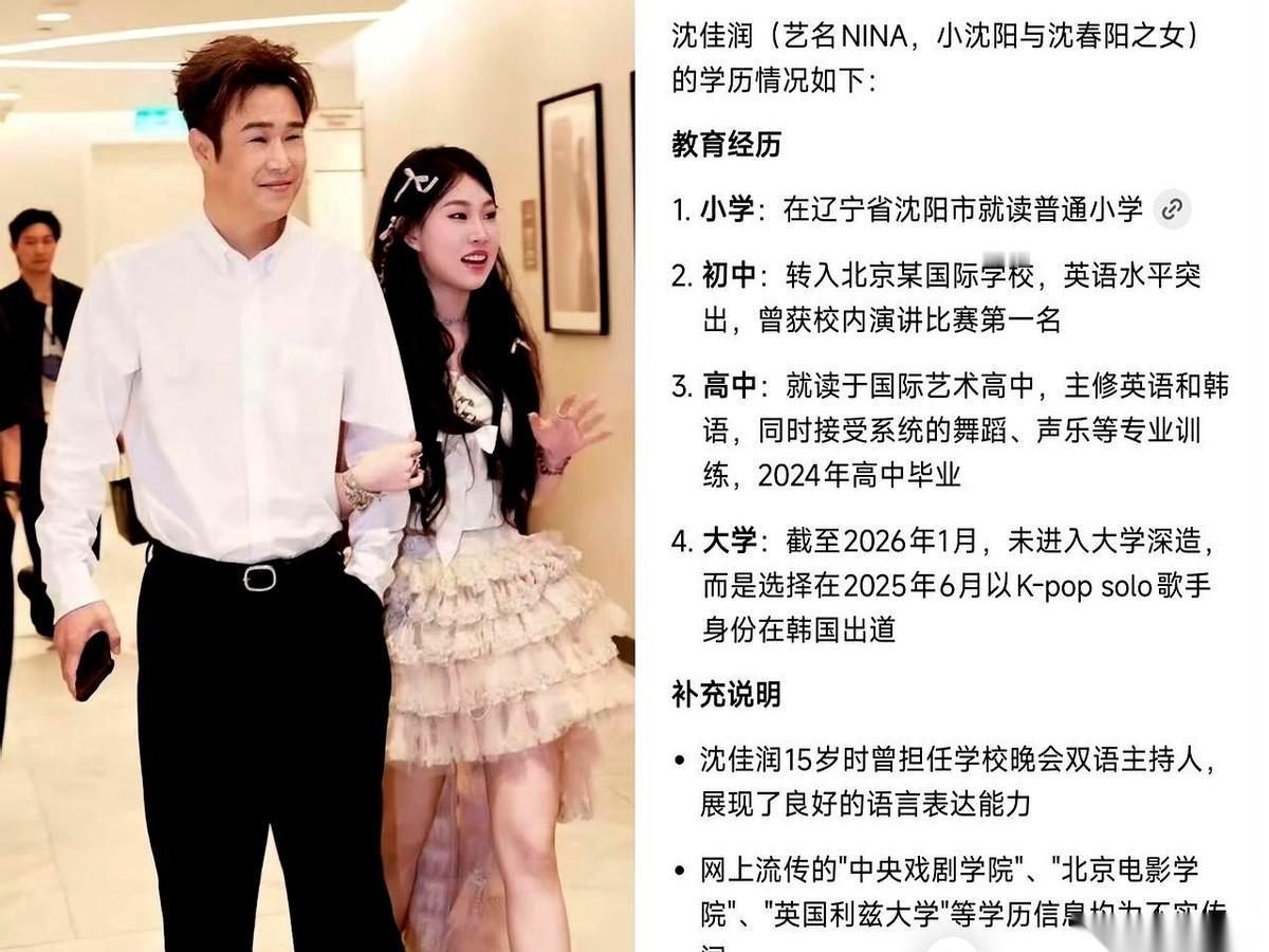 我天,刚刷到一个事儿,给我看愣了。 那个叫沈佳润的小姑娘,天天刷到她,原来压根没考上什么北影、北音。 还以为是学霸人设,结果人家高中一毕业,扭头就去韩国当了两年练习生。 说真的,一开始我也有点懵。 但你转念一想,这不比上大学牛逼? 在韩国当练习生什么概念?那是地狱模式啊,是真刀真枪地在“社会大学”里搏命,声乐、舞蹈,哪个不是硬功夫? 比我们好多人舒舒服服读个大学,出来两眼一抹黑,强太多了。 所以你看,人家现在直接上的是江苏卫视这种大台。 学历?重要吗? 在泼天的流量和肉眼可见的实力面前,那张纸,有时候真没那么金贵。 楼下小卖部放她的歌,小学生在哼她的歌,网上一个话题分分钟破亿。 这就是人家交出来的成绩单。 好多人还在那儿瞎操心,说哎呀这孩子得送去深造,别浪费了天赋。 我看得想笑。 醒醒吧,大清早亡了。 人家已经不在乎咱们这套老规矩了,人家走的,是另一条赛道。 而且,已经遥遥领先地冲过了终点线。 咱们好多人,还站在起跑线上,对着人家的背影指指点点呢。