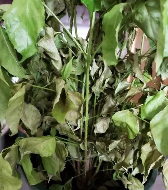 特别是北方的家庭,到了冬天,供暖把空气弄得干干的,幸福树受不了这种环境变化。