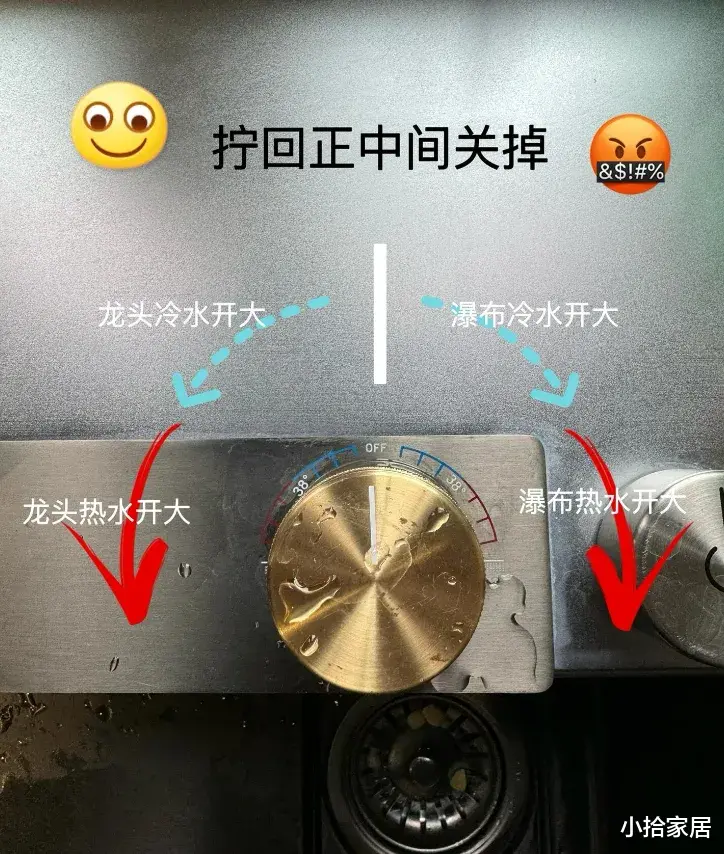 比如旋转式水温调节按钮,但凡你手上沾了一点油,拧起来就会特别费力,妥妥的“反人类”设计。