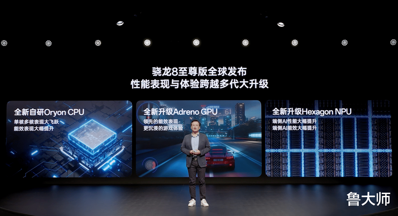 骁龙 8 系列旗舰处理器,在鲁Sir心中一直是高性能的存在。而此次骁龙 8 至尊版则是高通近年来升级最大的旗舰芯片。制程方面,骁龙 8 至尊版采用台积电第二代3nm工艺制程,CPU核心部分,基于自研的Oryon CPU架构,骁龙 8 至尊版配备了2颗基于Oryon架构的“超级核心”(Prime),主频来到了4.32GHz,与之搭配的是六个“性能核心”(Performance Core),主频也高达3.53GHz。这不仅是安卓CPU主频首次超越4GHz,高通官方还给出了惊人的CPU性能提升数据:单核、多核性能均提升45%,功耗降低44%。